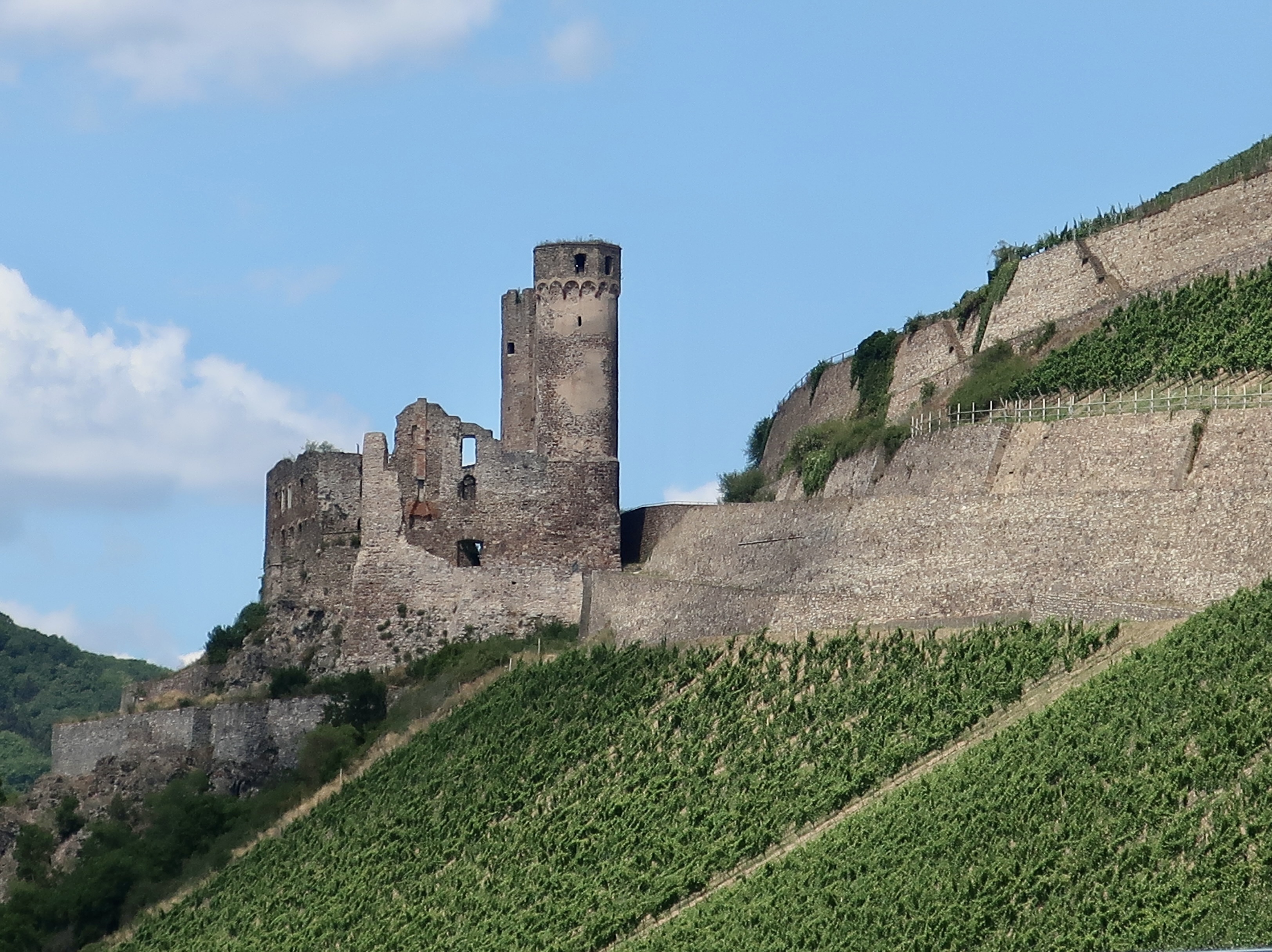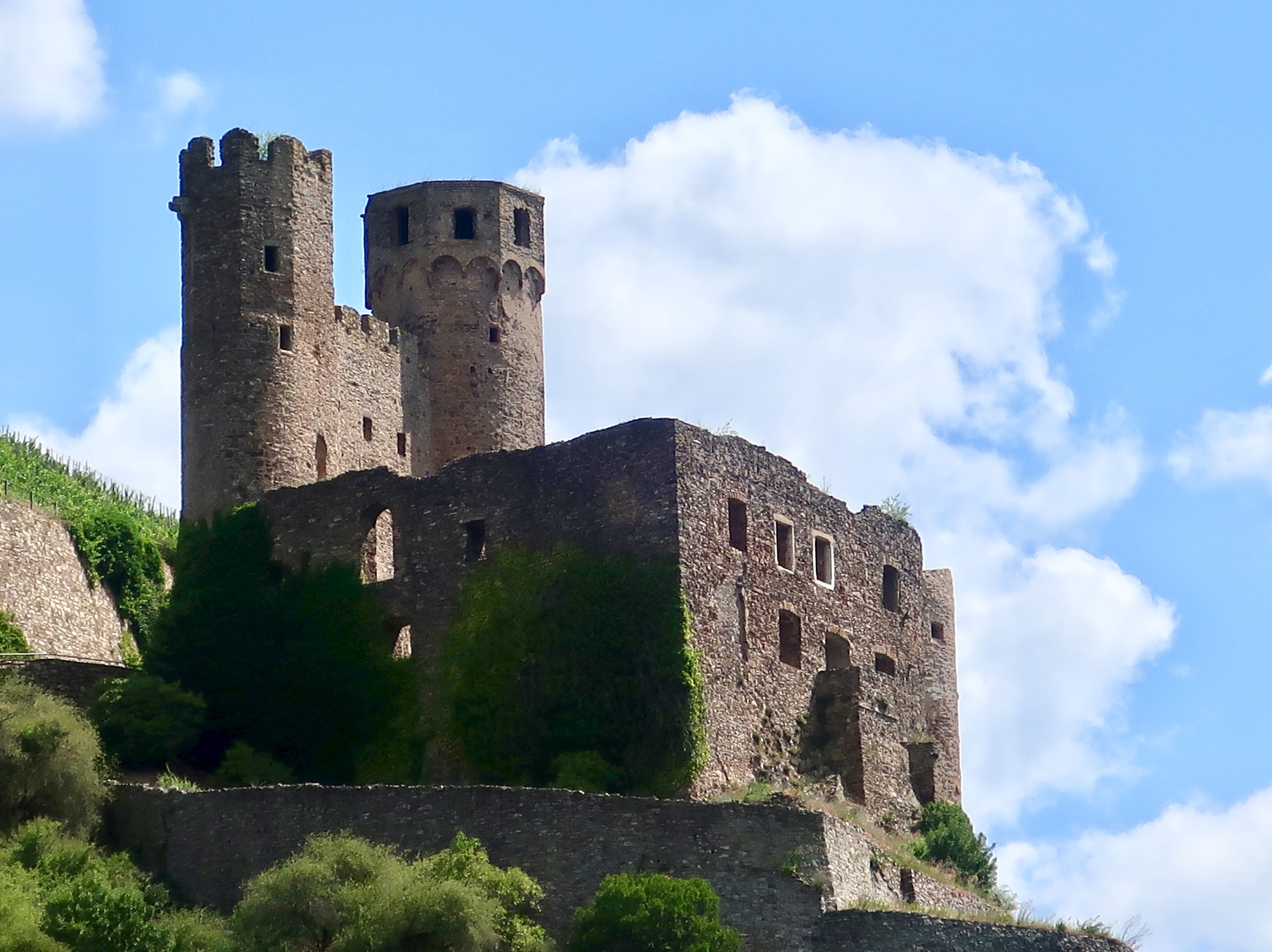 Surrounded by walls and grapes, the two towers of Ehrenfels Castle caught our attention. Today it remains in pretty much the same condition it was in when destroyed in 1689.