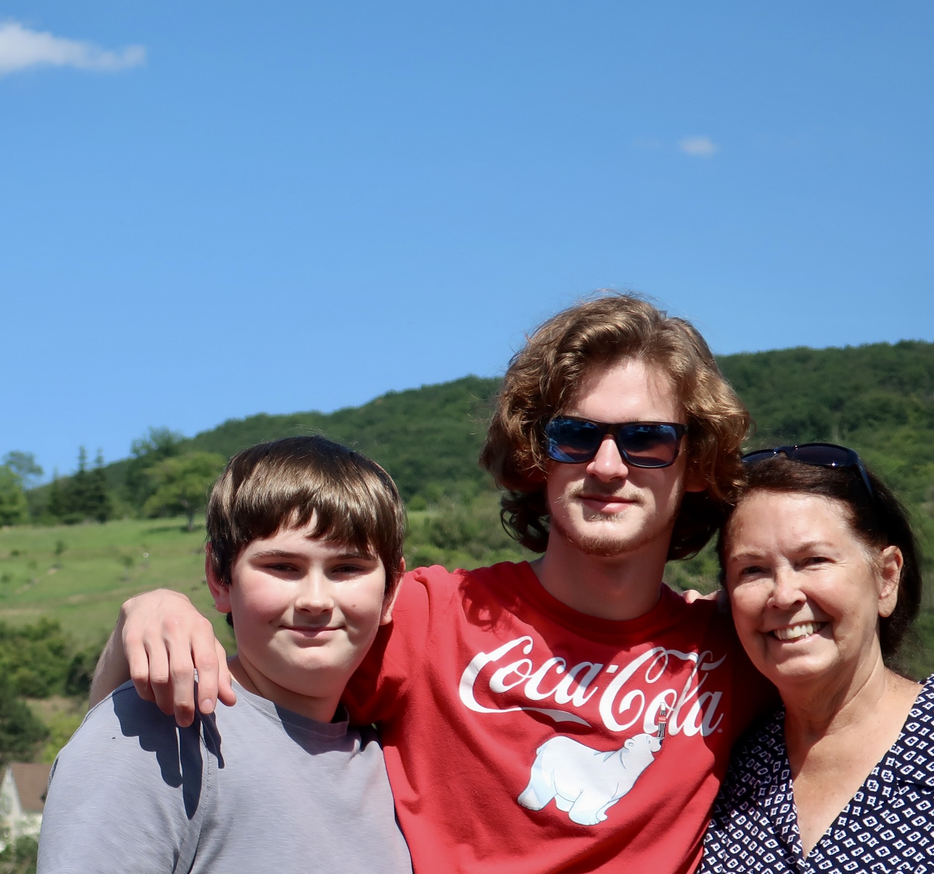 I’ll conclude today’s post with a photo of Tasha and Clay’s two boys, Cody and Ethan, posing with G’ma Peggy. Our next post will be a visit to Rheinstein Cast where we were turned loose to explore the castle on our own.
