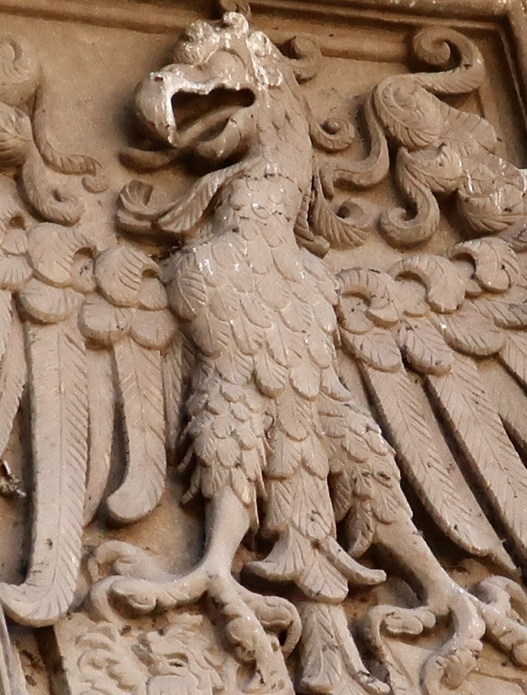 I only saw one imperial eagle but it certainly looked ferocious, which, I might add, was reduced somewhat by the bird poop on its head. I noticed that all of the lions in the photo above and the eagle are sticking their tongues out. I wonder if it meant what it does today.