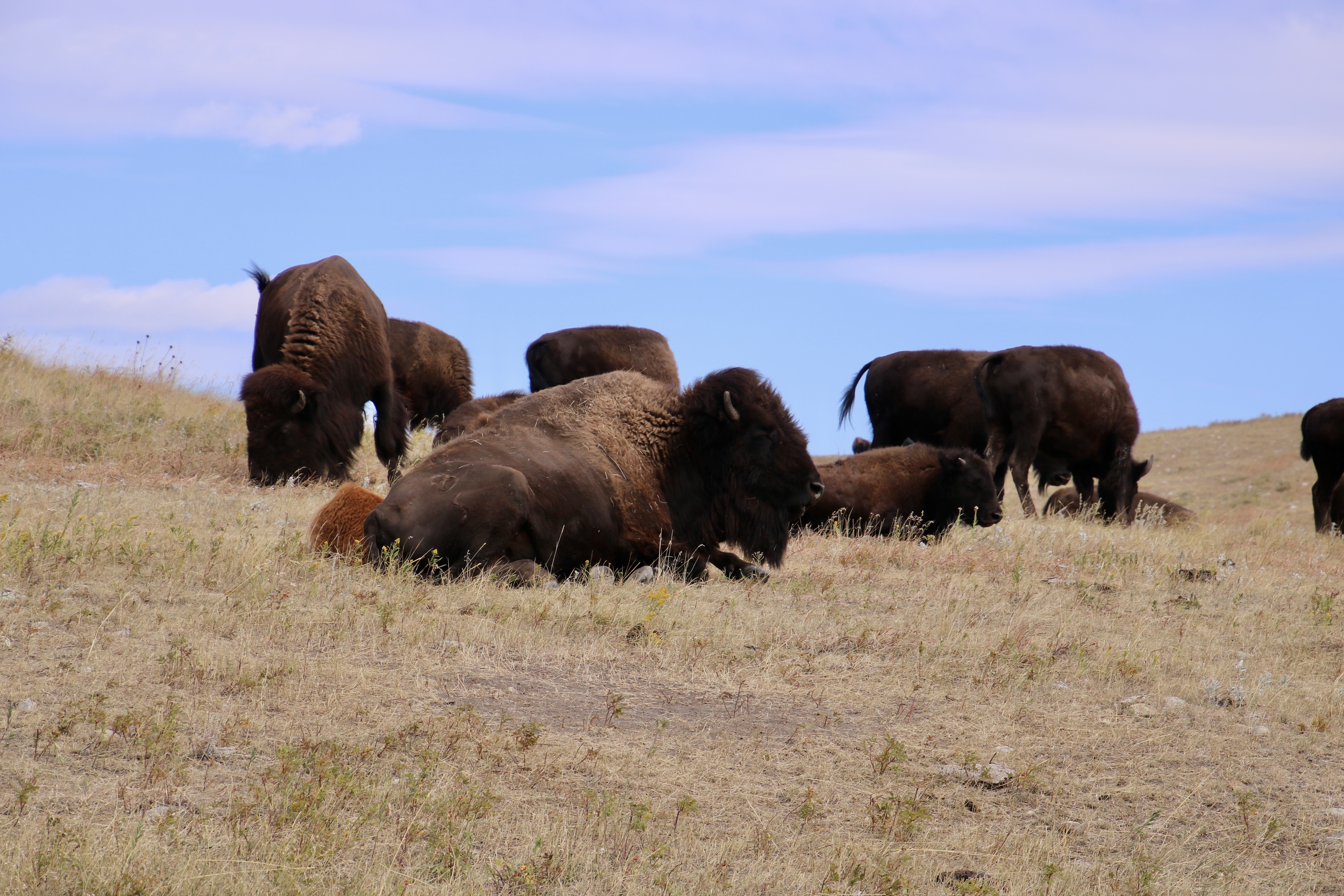 These buffalo, lazing about on a hill in Custer State Park, actually aren’t buffalo. They are bison, or Bison, bison, bison, according to their taxonomic classification. If you want to find true buffalo outside of zoos, you will need to go to Africa or Asia. Actually, these guys could care less what you call them. I’ll stick with buffalo, which is what the first European, a French trapper, thought they were when he came across them in the 1600s.
