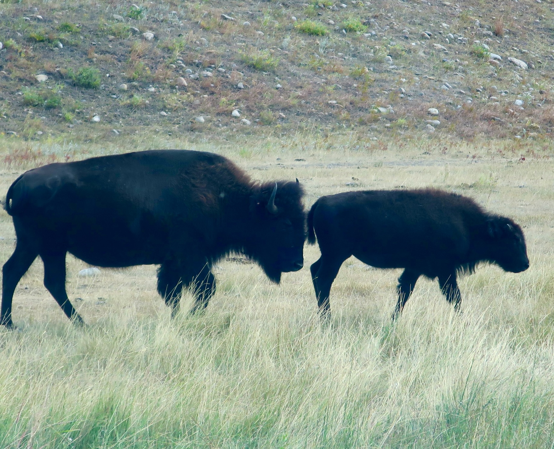 Buffalo on the move. Here we have a mom and calf.