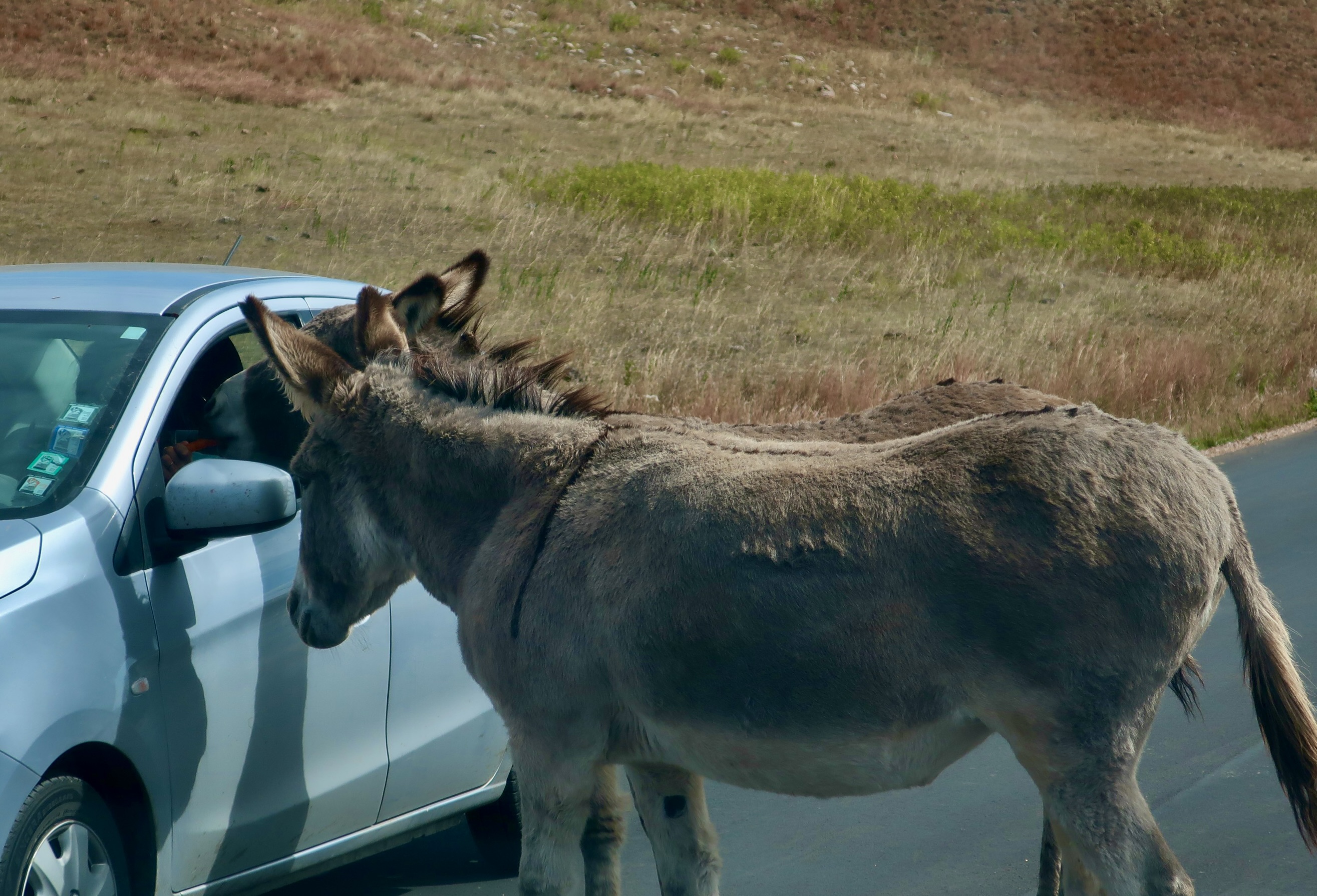 Unlike the buffalo, the donkeys blocked the road purposely— in search of goodies.