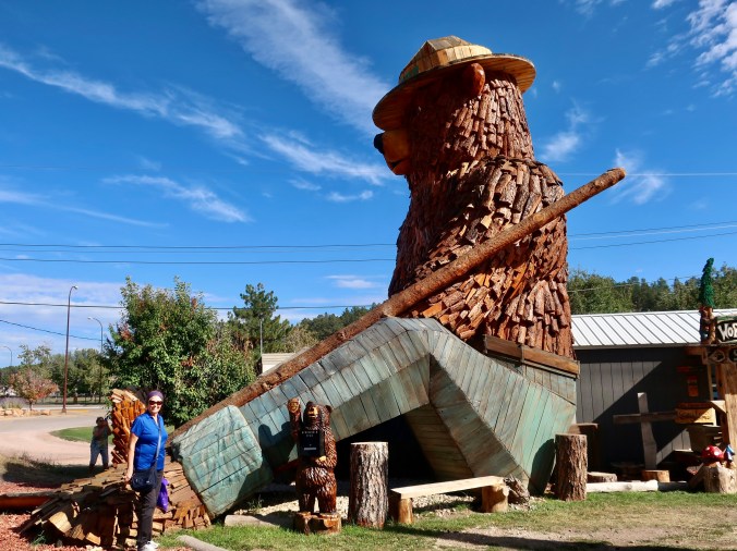 As you probably know, Peggy and I have a thing for Bigfoot. The world’s only Bigfoot trap was located about 3 miles from where we lived in Oregon. We found this fellow in Custer, South Dakota. Judging from the look, it appears that Bigfoot has a thing for Peggy as well. Should I be jealous? But what about the creature on top of his head? Your guess is as good as mine, but I think I don’t have to be worried about a guy who walks around with an octopus as his hat.