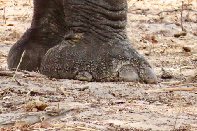 That’s quite the story, Cindy. We had two guides with us, both carrying elephant rifles. One was the owner of the lodge. He told us in his 20 some years, he had only had to shoot one elephant. The lodge was a tent camp. Each night when we walked back to our ‘tent,’ an armed guide would accompany us. And yes, I do have size 15 shoes. 🙂