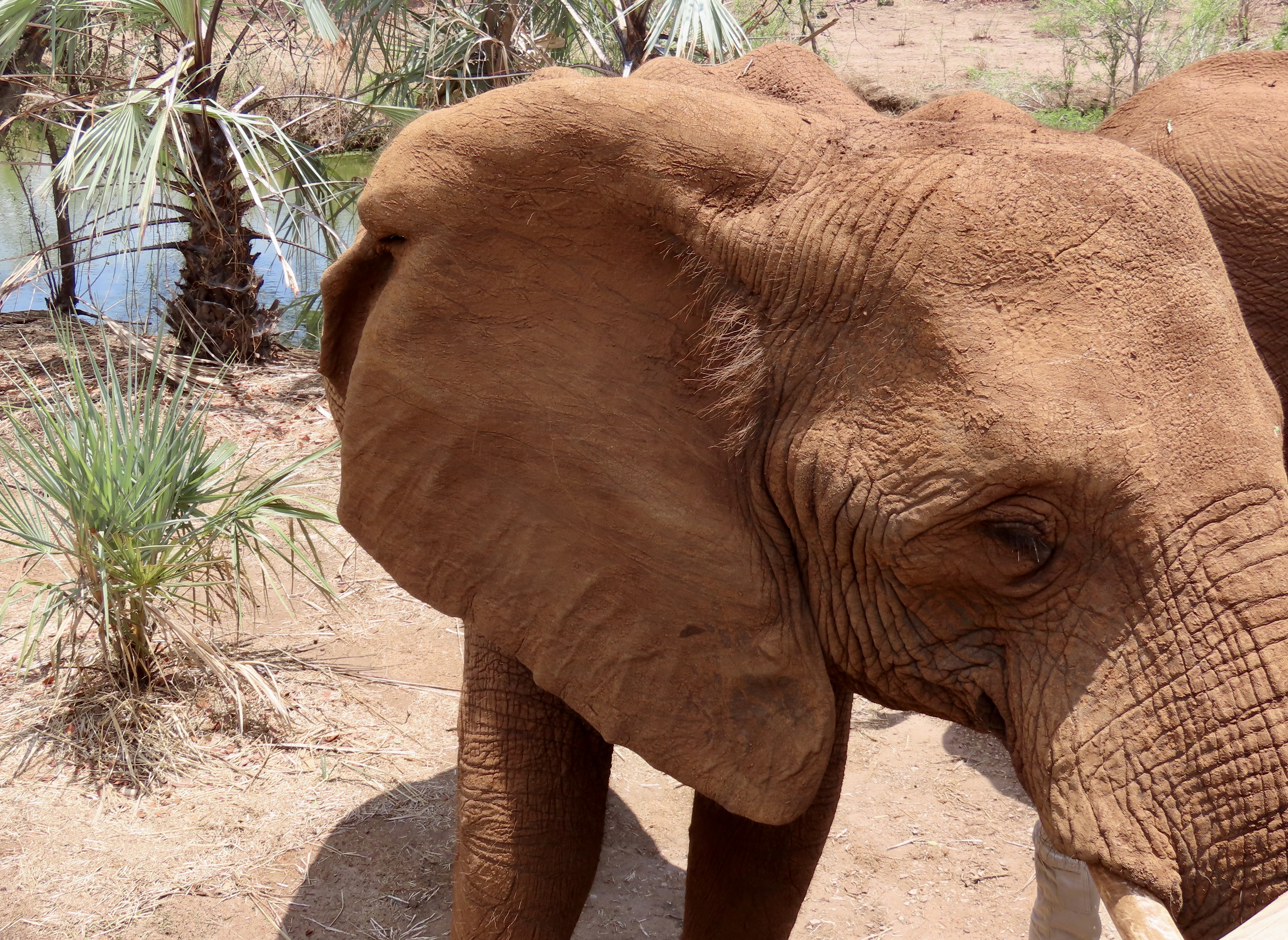 I have big ears. They are 3 1/2 inches long. African elephants have provided a new perspective. Theirs can be six feet long and five feet wide. “The better to hear with,” you might note. And elephants do have good hearing with a range from 14 to 16,000 hz. (Humans range from 20 to 20,000 hz in comparison.) The lower range is known as subsonic. Elephants can actually make subsonic sounds with their trunks that humans can’t hear but elephants can— up to miles away! The large flaps also serve to direct sound toward the inner ear. Think of cupping your hands behind your ears. It helps to say “eh.”