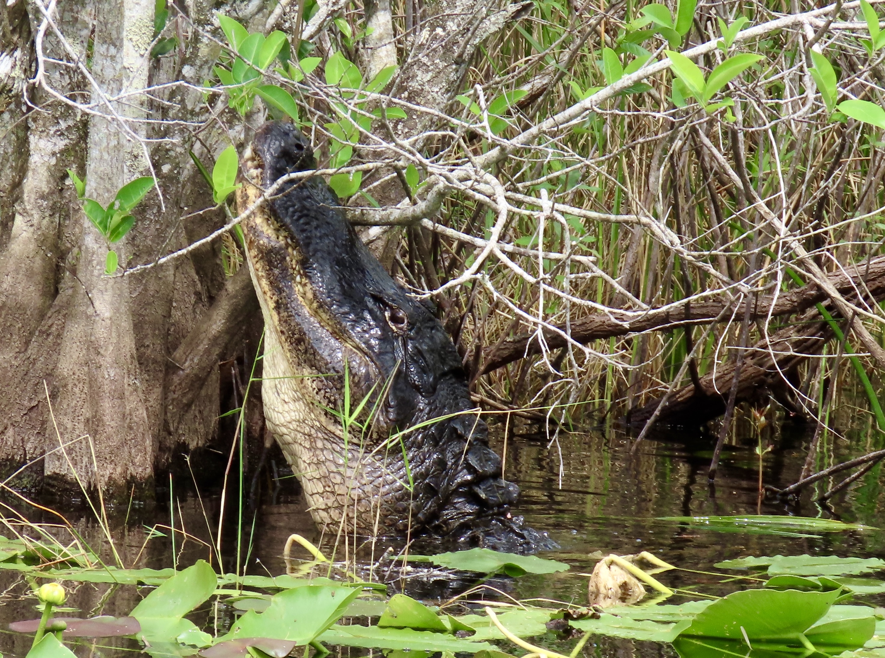 I’ve already done three posts on our Everglades trip: One on white pelicans, one on osprey, and one on the area around Everglade City on the Gulf Coast. I’ll conclude today featuring more of the Atlantic Coast side where we found the osprey and white pelicans. We entered the park at the Ernest F. Coe entrance. After stopping off at the Visitor Center, we made a beeline for the Anhinga Trail, just inside the park. Peggy and I had been there before and were quite impressed with the alligators and birdlife.