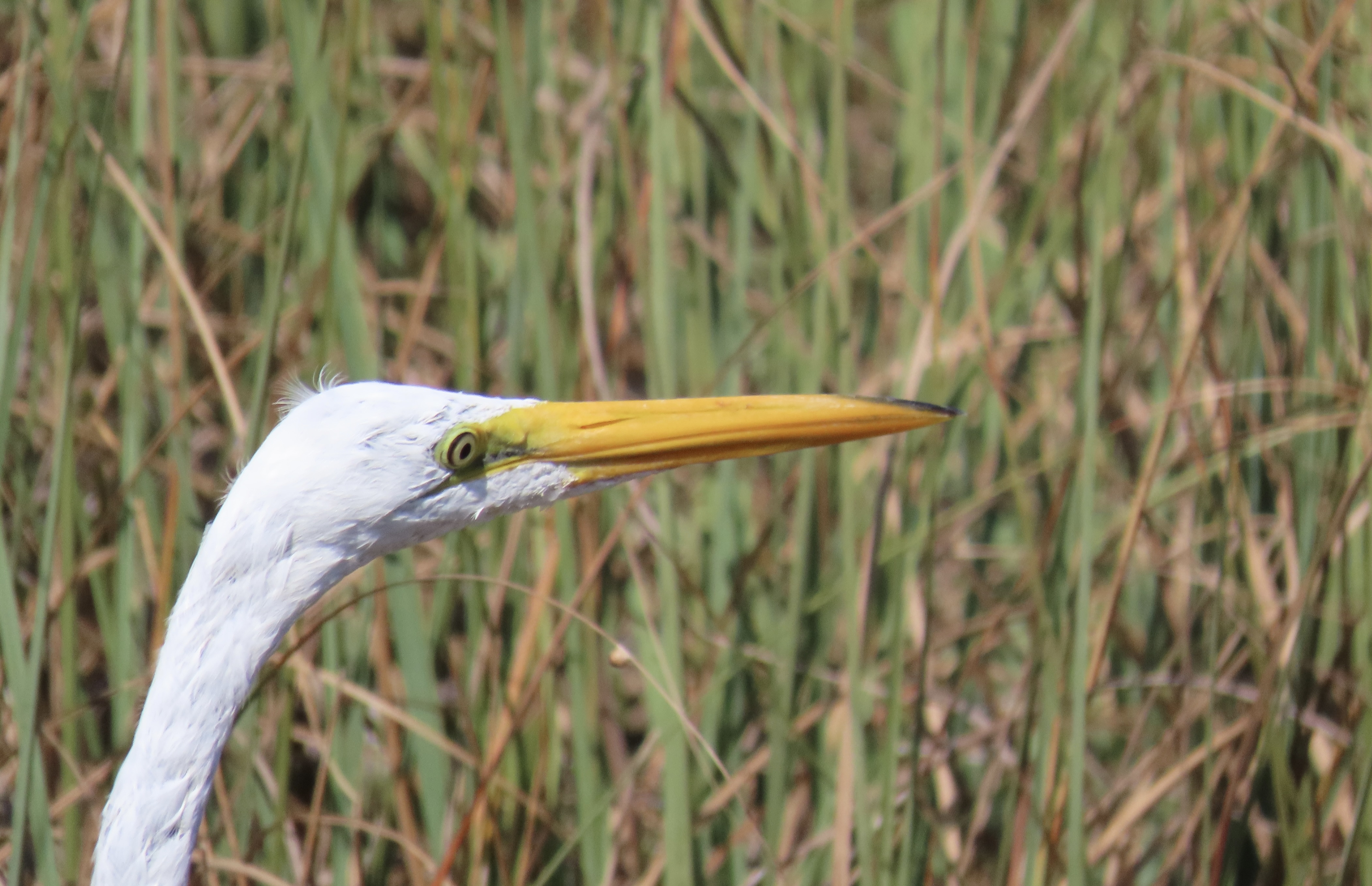 One of our stops along the way toward Flamingo was the Mahogany Hammock Trail where we found this great egret. I called it scruffy neck. They say that great egrets have really long necks.That would certainly appear to be true from this photo. But it got longer…