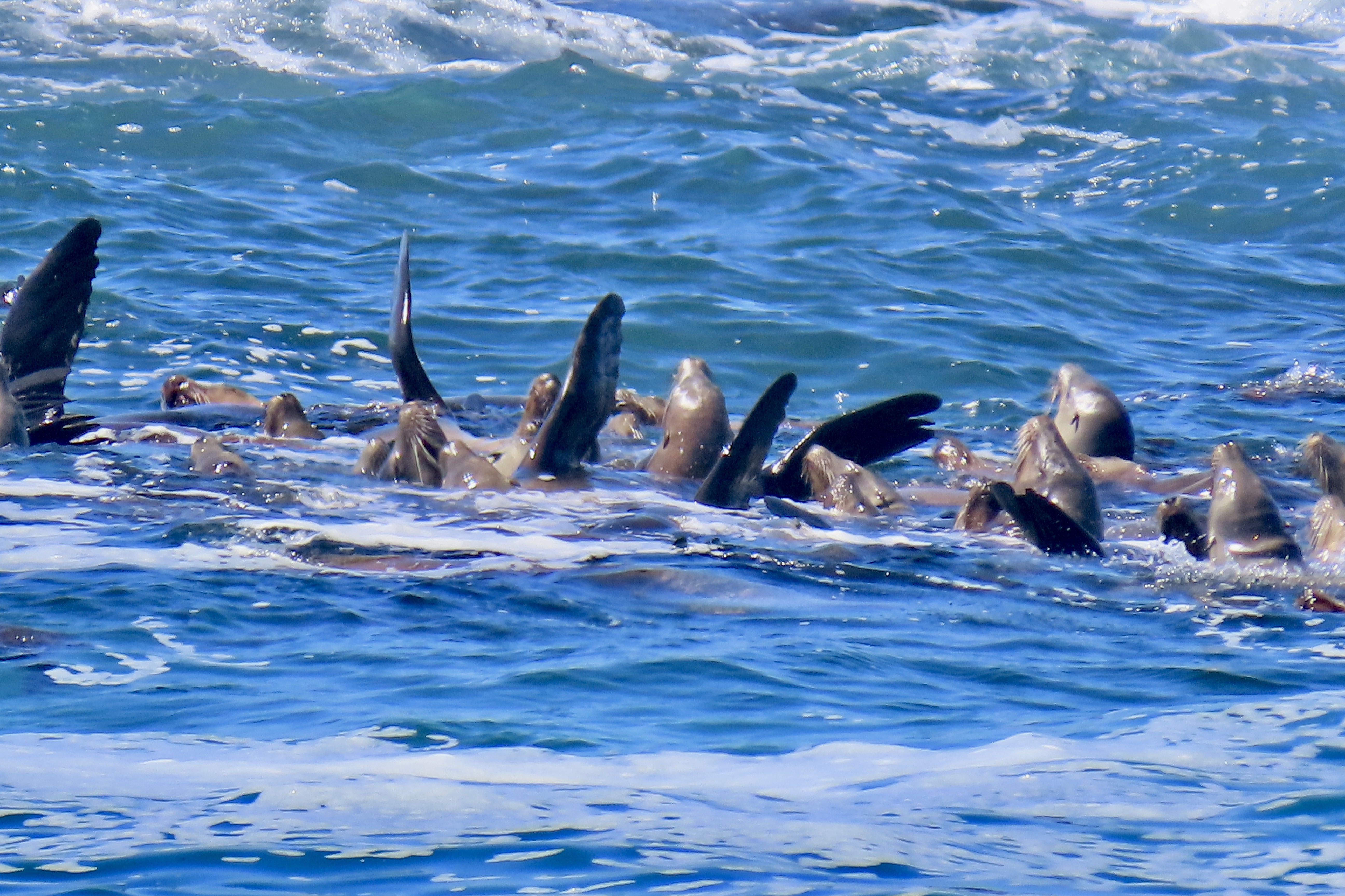 This view had Peggy and I both wondering what the heck we were looking at. Sea lions, yes. But doing what? I’ll explain what we learned in our next post.
