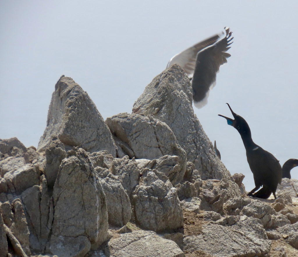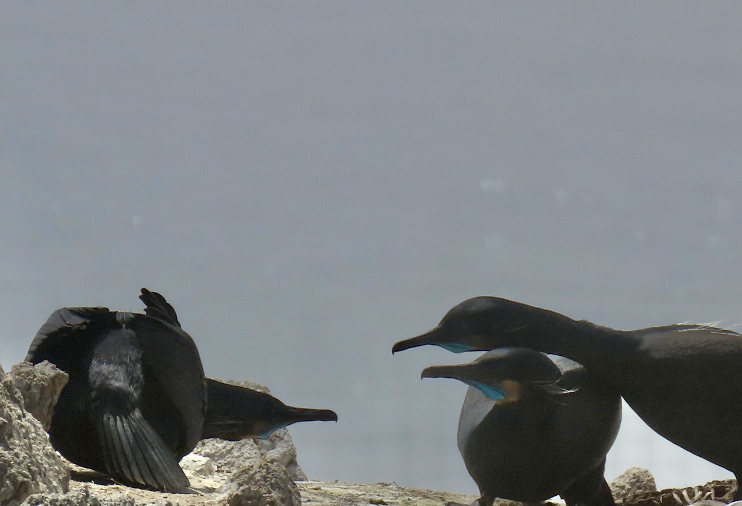 7. I was astonished by the colors in these cormorants. They’re quite fancy compared to ours! Of course, the water there’s pretty fancy, too — and the rocks are splendid.