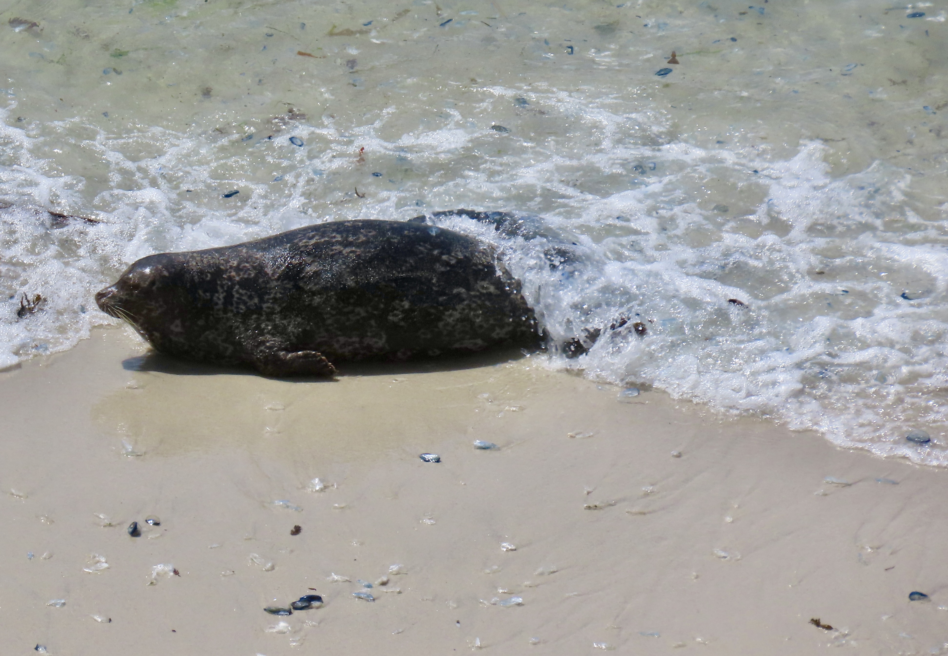 We watched a mother seal swim in with her baby. A wave had washed the baby up against the mother.