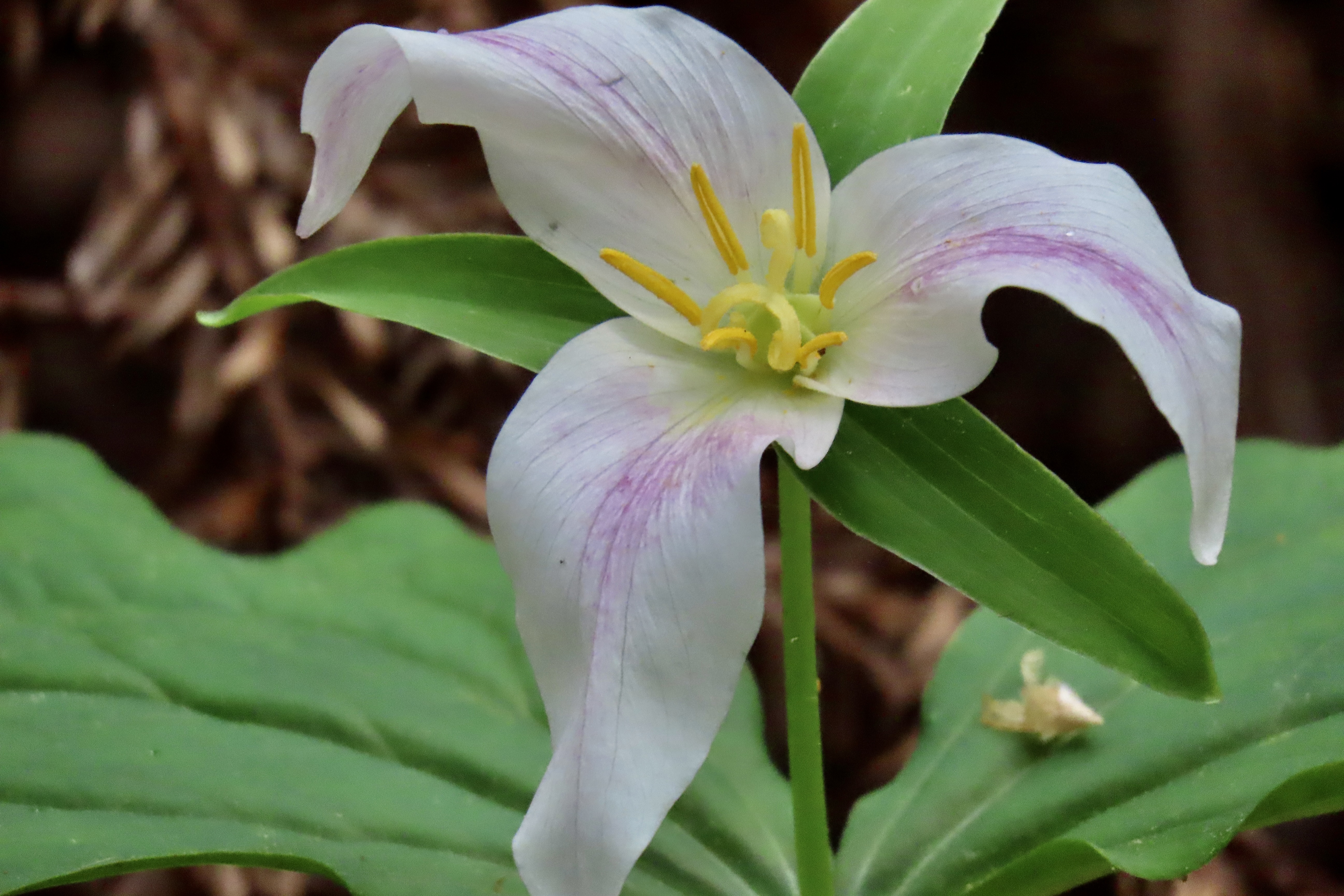 We found this one elsewhere in the Park. Trilliums earn their name by having three petals, three sepals, and three leaves.