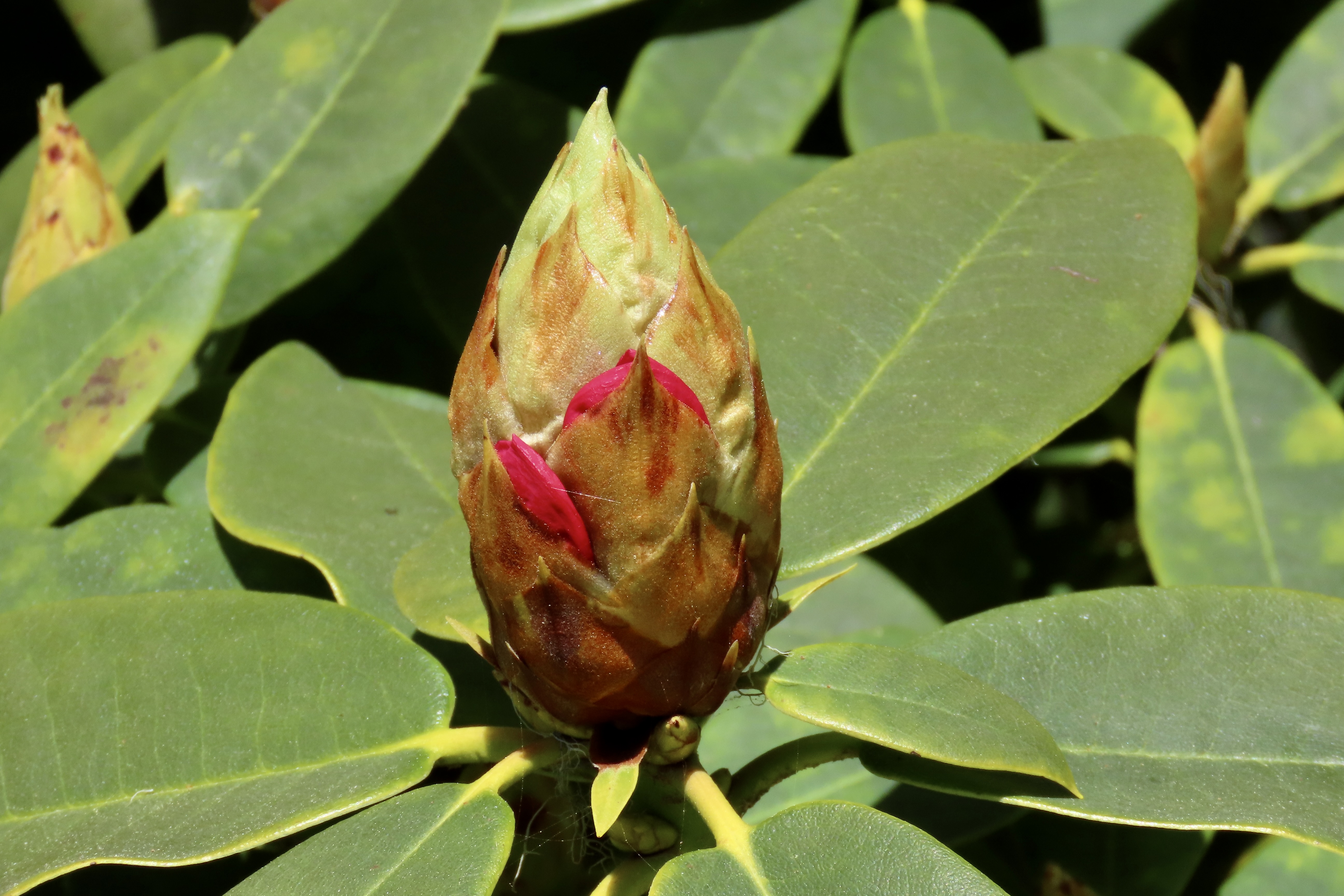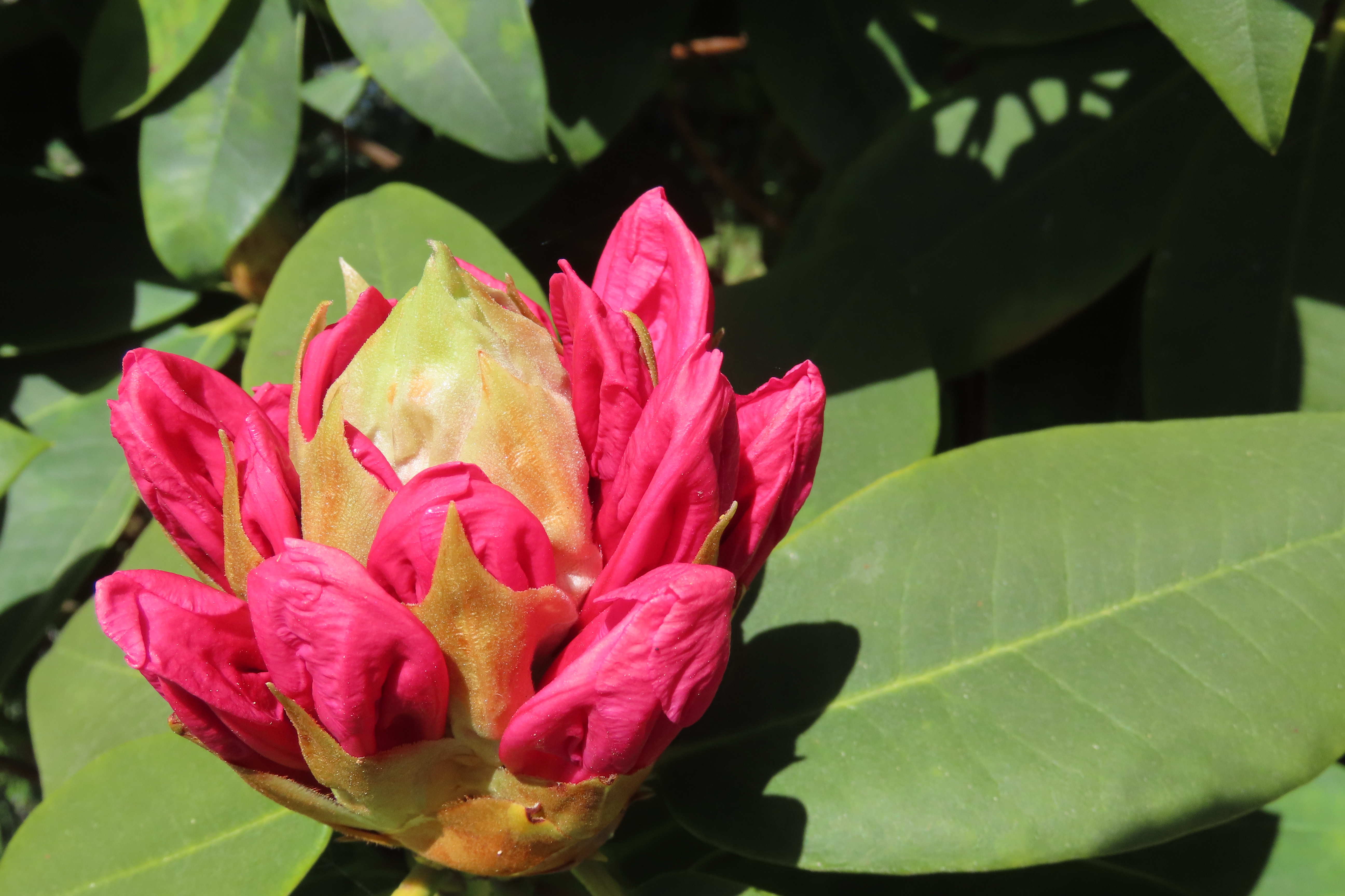 An old cemetery was next to where we were parked. Rhododendrons were budding in it.