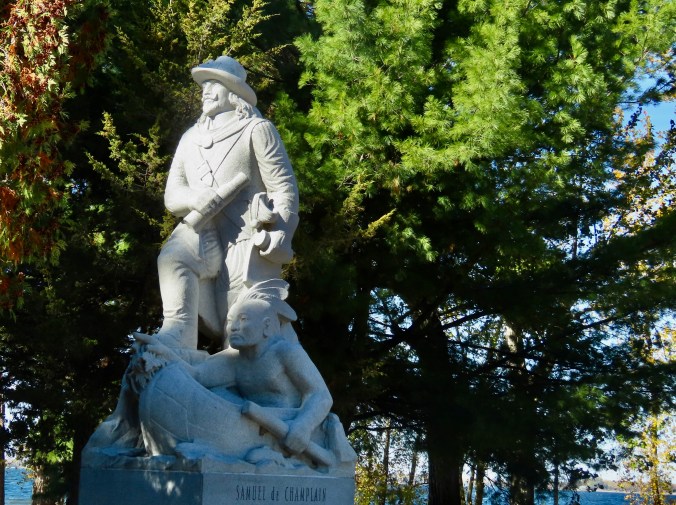 First considered wild and inaccessible by the early European settlers, the Adirondacks later became a major logging area. The sign behind Peggy noted that some 200,000 logs were sent down the Saranac River behind her in 1846. By the early 1900s the Adirondacks had become a playground for the wealthy including the likes of the Vanderbilts, J.P. Morgan, Andrew Carnegie, and the Rockefellers.