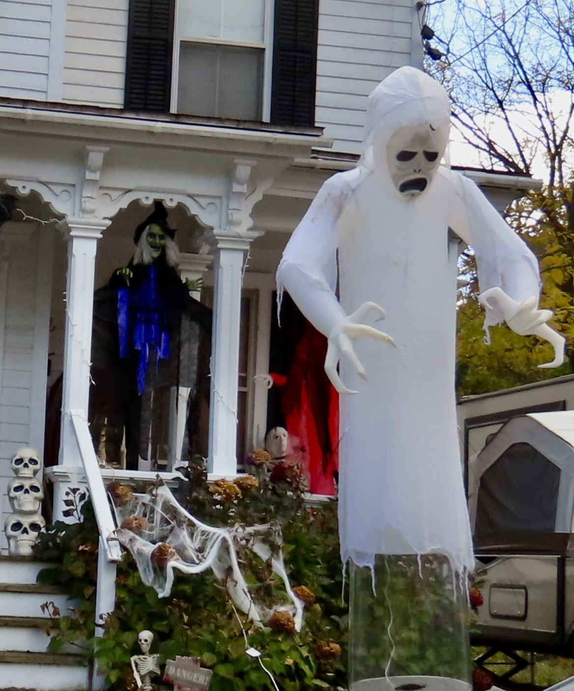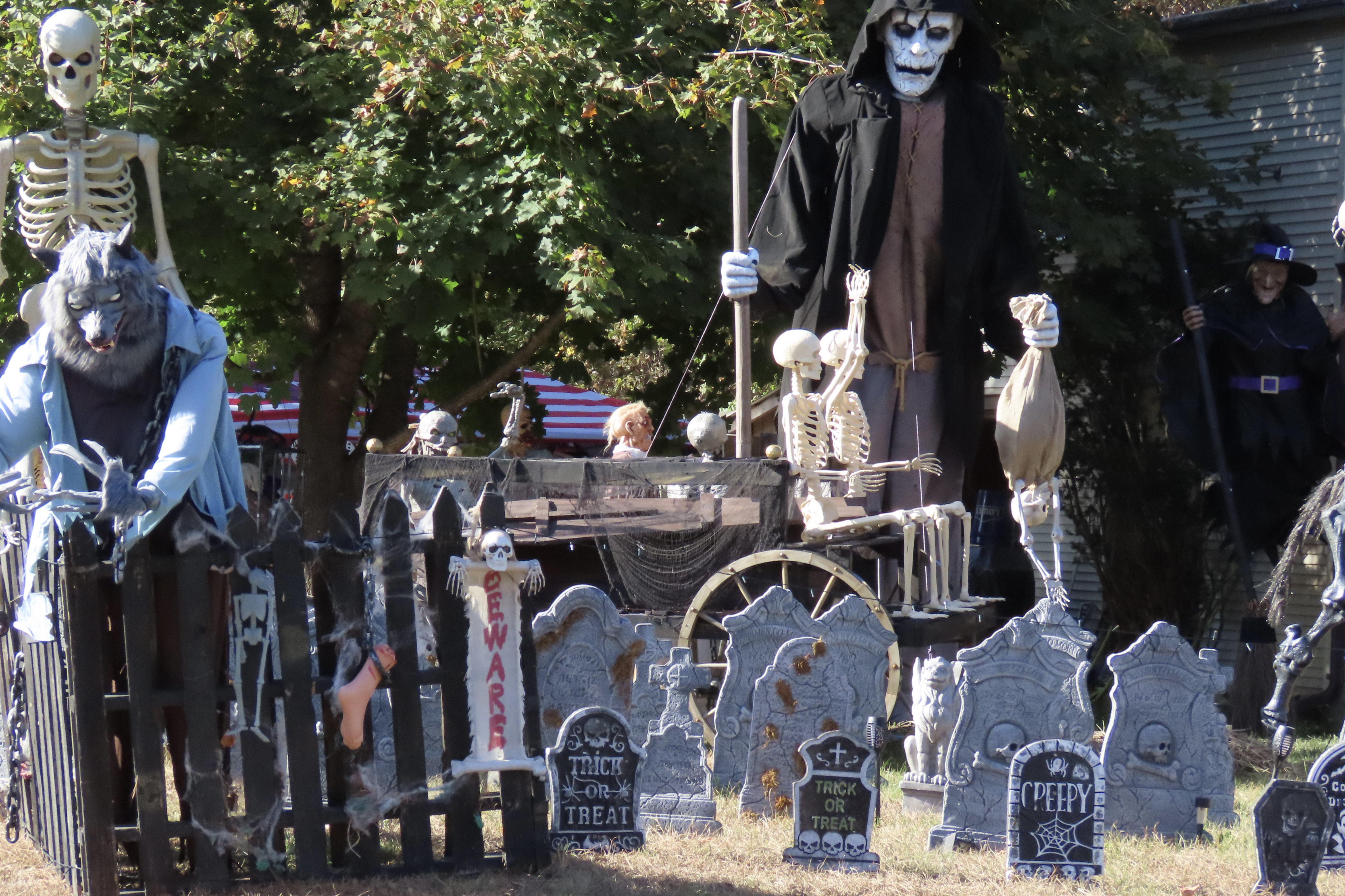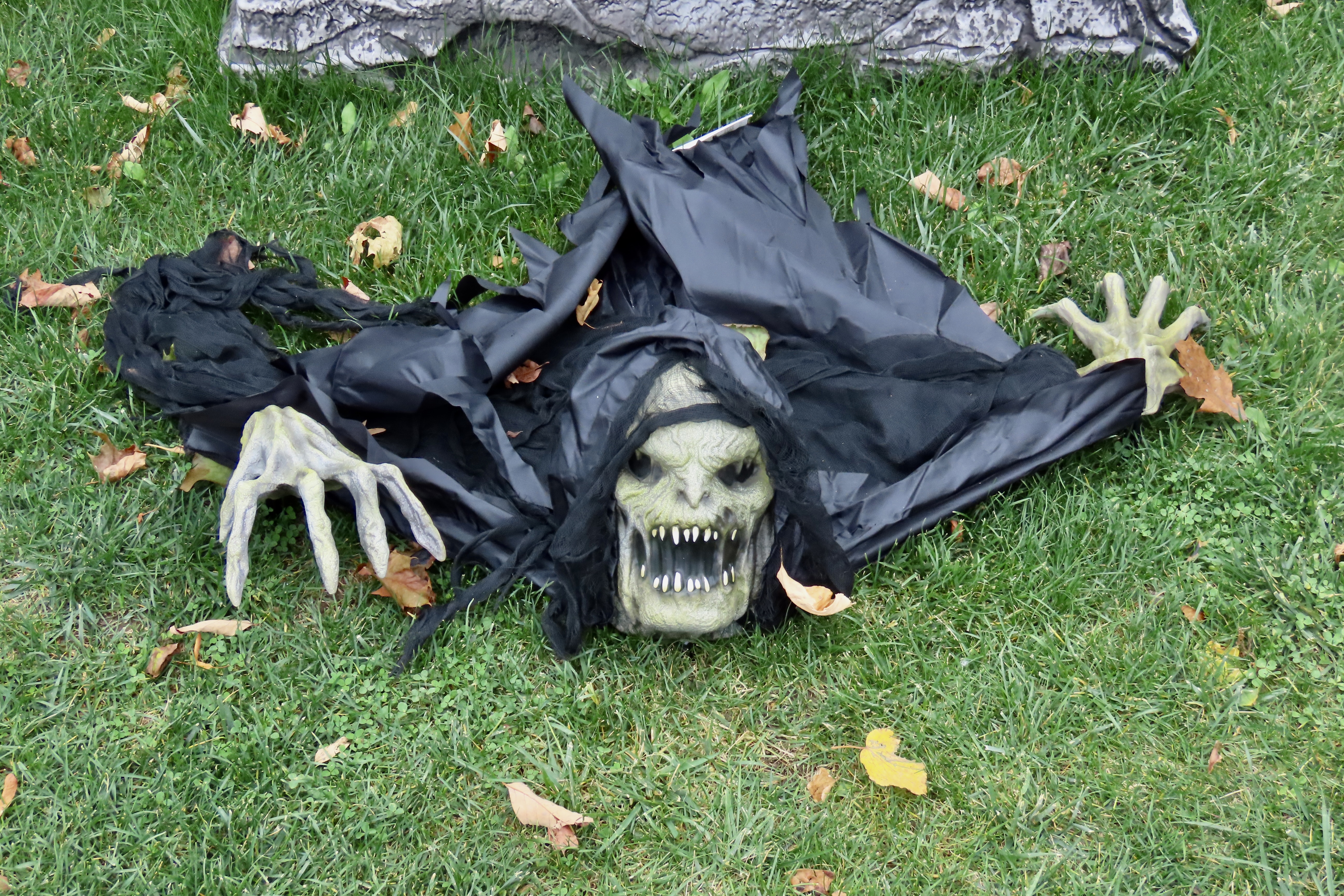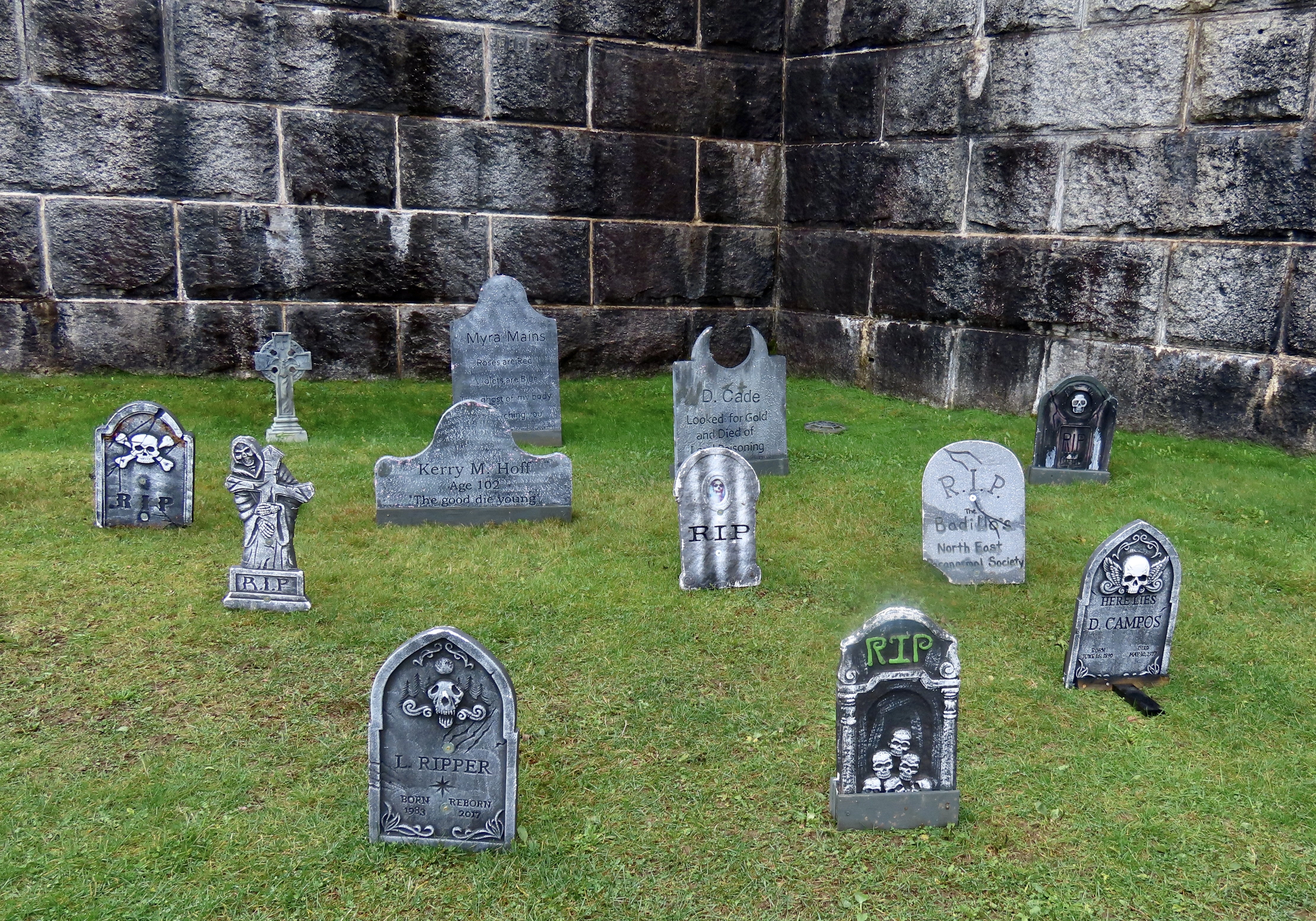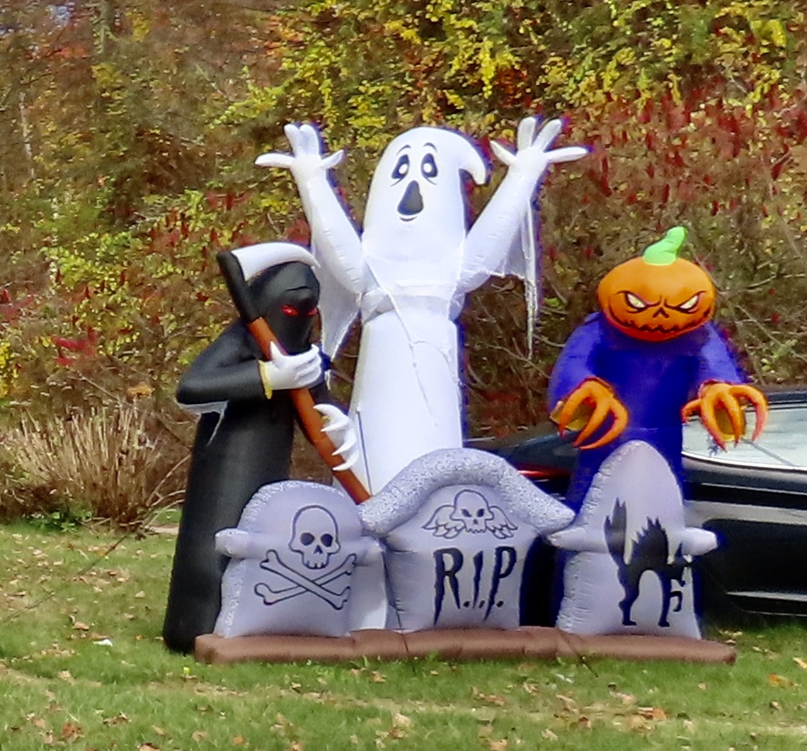 Scratch, scratch! Something was digging behind a tombstone and it was not my imagination. Marshall heard it too. We went crashing out of the Graveyard with the hideous creature of the night in swift pursuit. Wagging her tail.