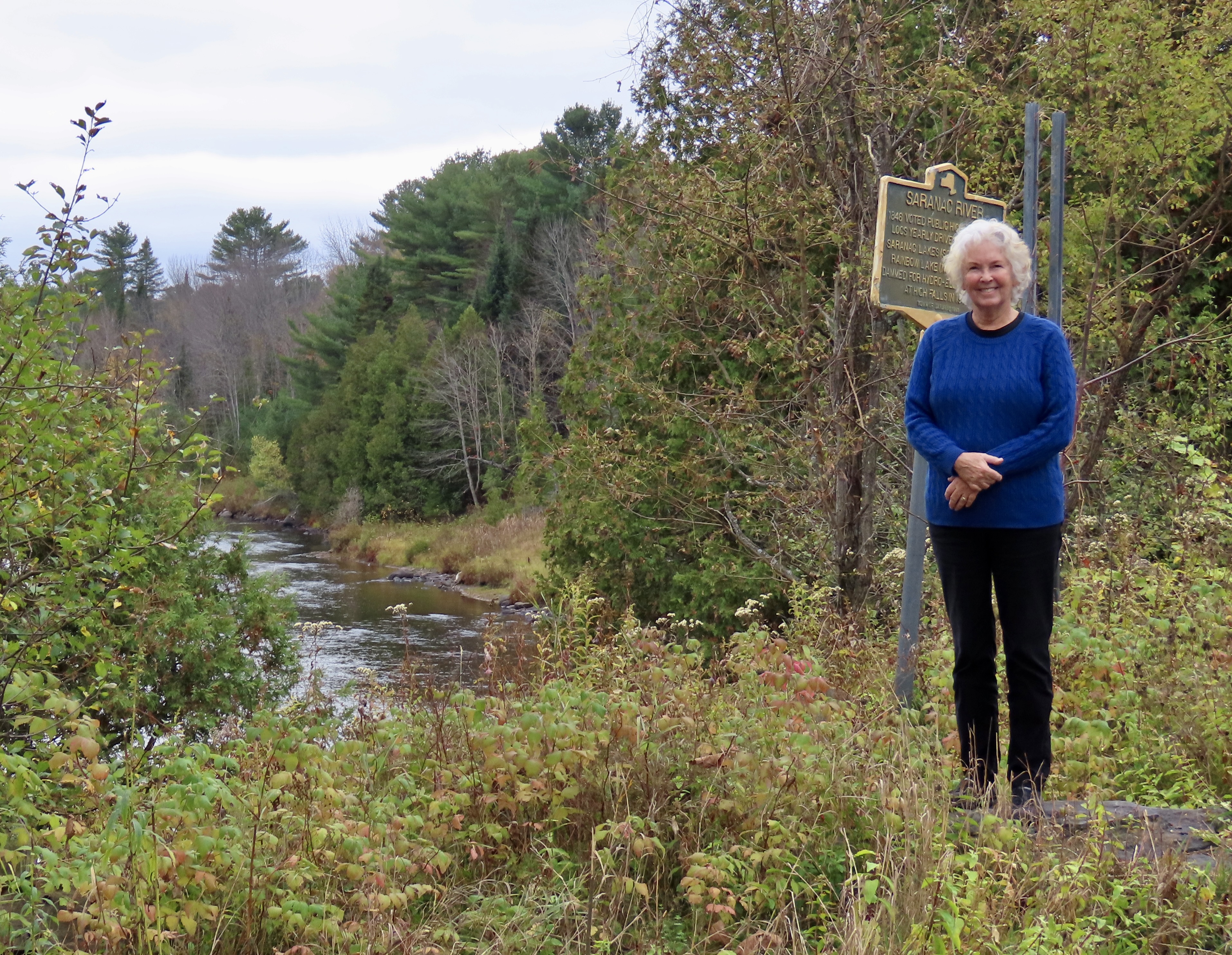 First considered wild and inaccessible by the early European settlers, the Adirondacks later became a major logging area. The sign behind Peggy noted that some 200,000 logs were sent down the Saranac River behind her in 1846. By the early 1900s the Adirondacks had become a playground for the wealthy including the likes of the Vanderbilts, J.P. Morgan, Andrew Carnegie, and the Rockefellers.