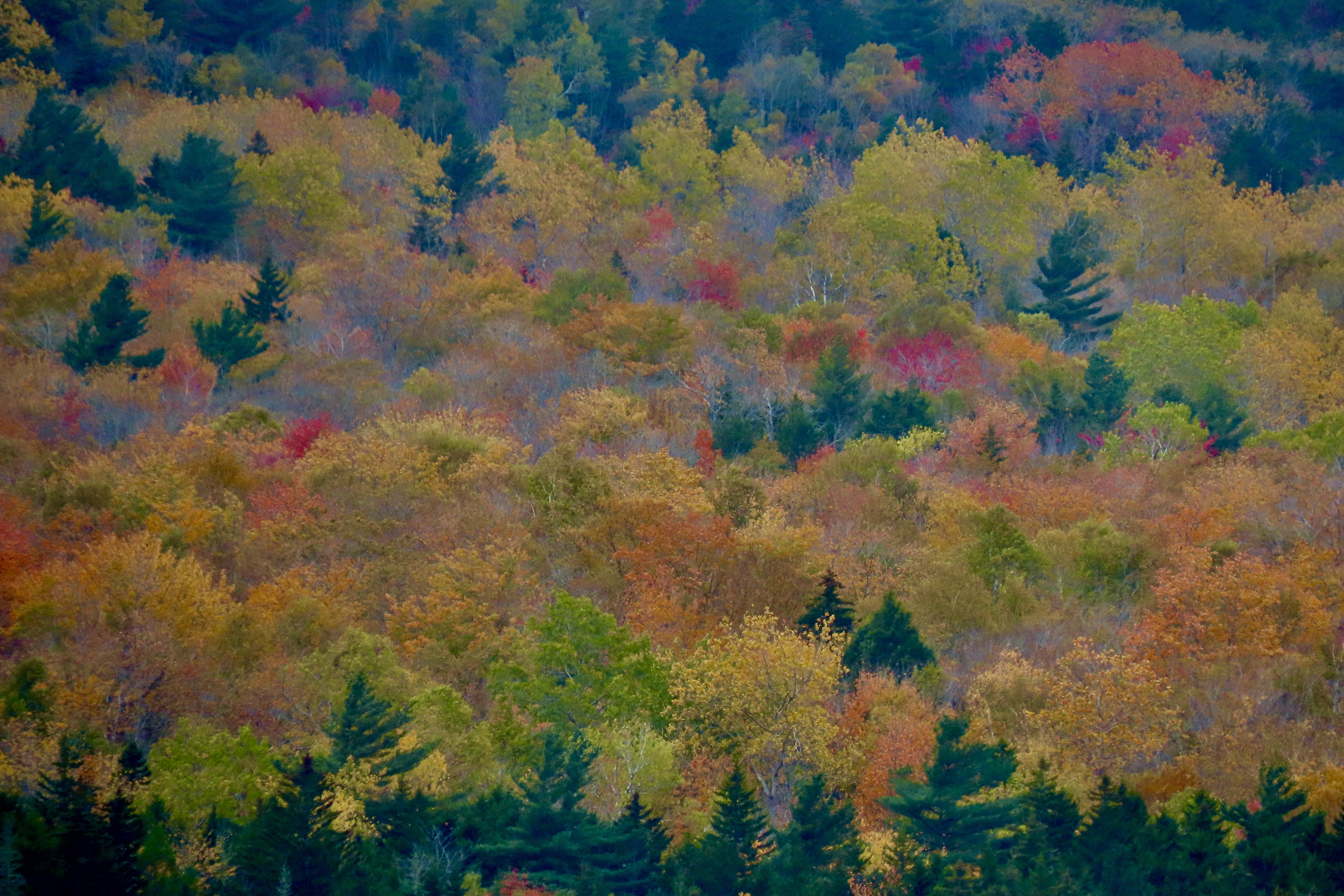 This was our second time visiting Acadia during leaf peeping season. The first took place in 1999 when Peggy and I both took sabbaticals from our jobs to explore North America with a focus on National Parks. (We visited 50.) Before reaching Maine, we had already been enjoying fall colors for three months! Our adventure had started in June with a drive up the Alaska Highway to Alaska. By the time we finished exploring the state, backpacking, and kayaking, it was mid-August. The leaves were already changing. We followed the advent of fall down through western Canada and across the northern tier of midwestern states to Maine. It was color the whole way. And It continued for another 2000 miles as we traveled down the Appalachian chain of mountains into Georgia.