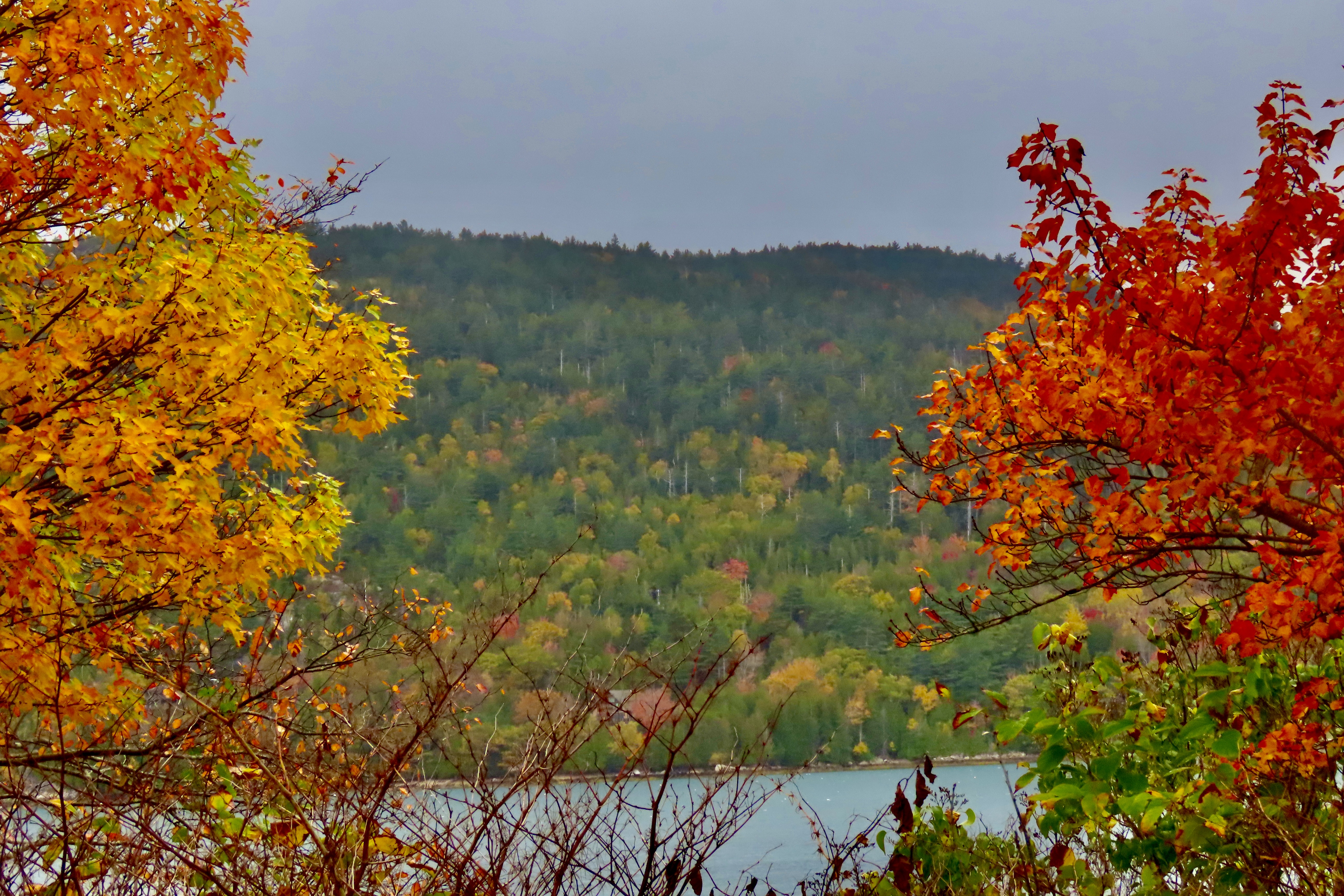 We are wrapping up our leaf-peeping tour of New England tour today. I’ll close out the series with photos of the Island and three spectacular trees at Camden Hills State Park. And then add a few more as we travel back to Virginia.