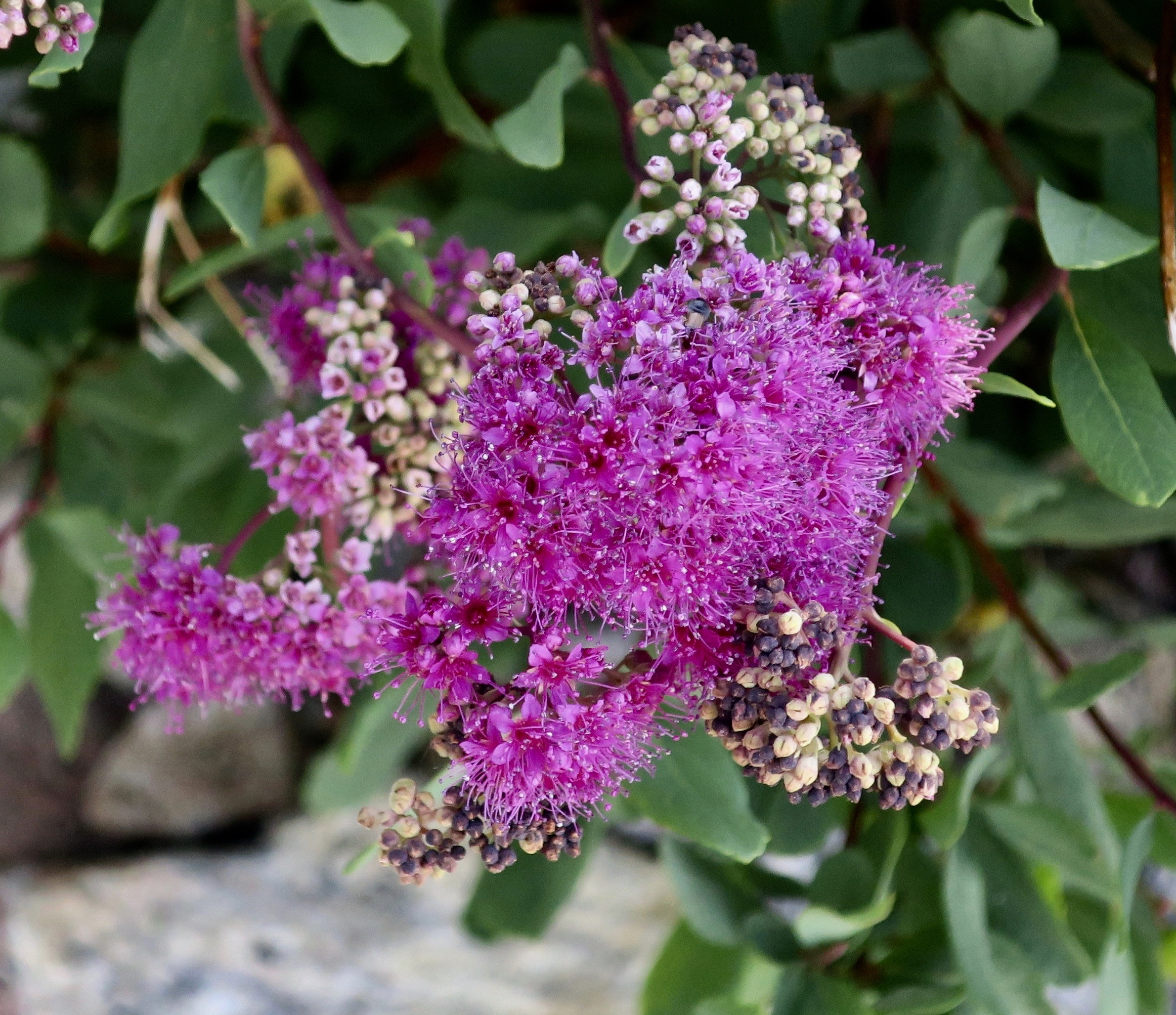 As in the first half of the journey, there were flowers to admire.Including thistles.And one of my all time favorites, a monkey flower.There was even a ‘dried’ floral arrangement.The trail climbed up and over a ridge and then worked its way off into the distance across a seemingly barren landscape as smoke from forest fires continued to fill the air.But small streams complete with flowers and cool water provided a welcome respite…And the smoke could not hide the area’s beauty. In ways, it even enhanced it.I even found a photo frame.The trail soon provided other views. This rock formation was the result of an ancient volcanic mud flow.A juniper tree stood beside the trail, adding its unique brand of beauty.I remembered this juniper and its boulder from a previous trip 22 years ago. How could I forget?Rocky crags soon dominated the views along the trail.Looking south from my campsite above Pennsylvania Creek.Hiking out of the Mokelumne Wilderness the next morning provided many classic northern Sierra Nevada scenes.And in conclusion: More volcanic mud flow working its way down the mountain.Colorful lichens.A close encounter between a bumble bee and a flower.And a bit of humor to end the post. Two limb monsters going head to head. My money was on the guy with tusks.Next up, in our continuing focus on the beauty of wilderness areas, I travel north of Mokelumne Wilderness to the Granite Chief and Desolation Wilderness areas west of Lake Tahoe. This is an evening reflection of Little Needle Peak in Little Needle Lake. I’ve camped there many times over the years.