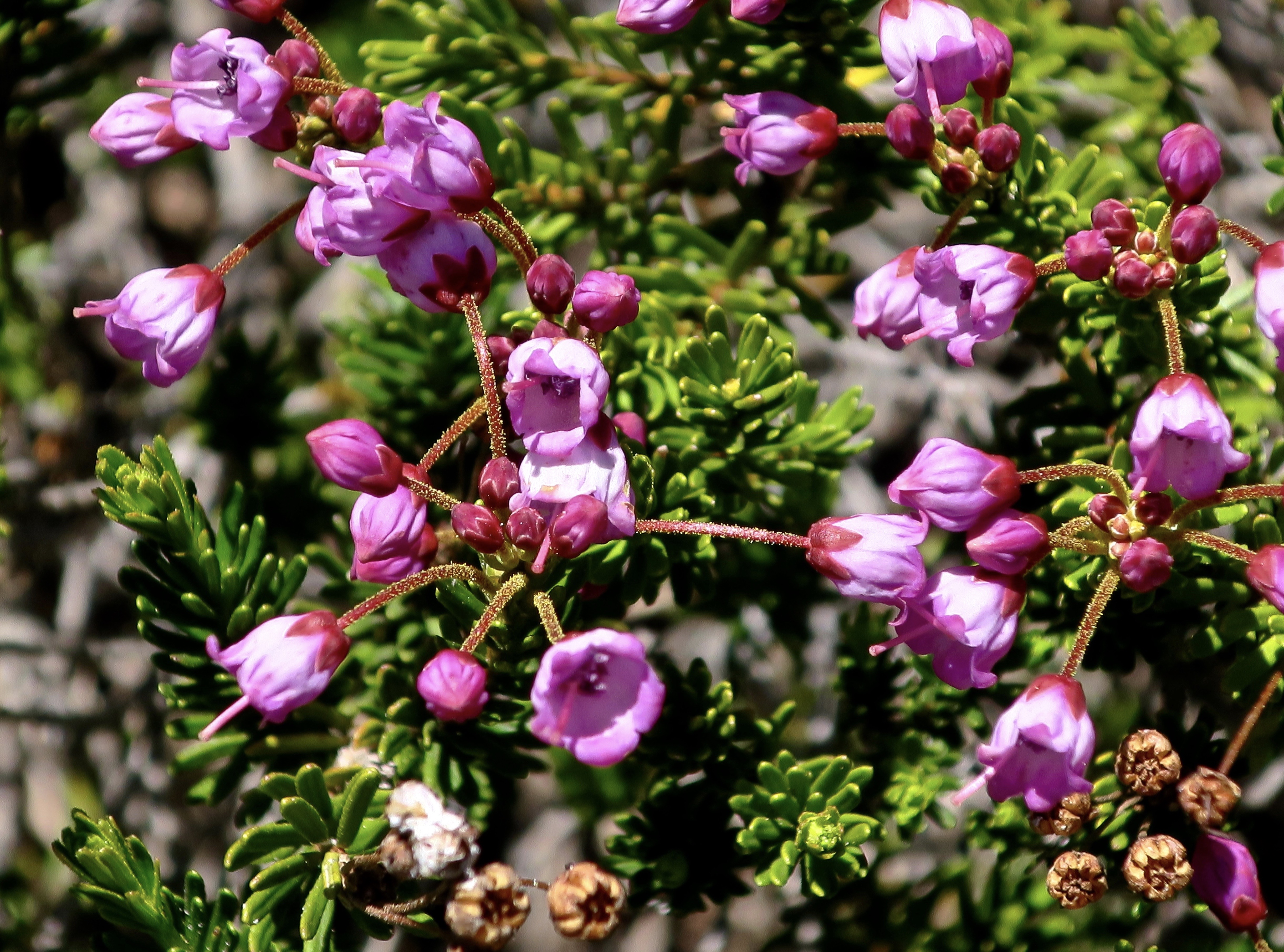 By the time I got to the Mokelumne Wilderness section of the PCT, I was looking a little scruffy, not to mention skinny.Peggy, who is never scruffy, sent me off with a smile. She hiked three sections with me and provided support on all of the others, for both me and through-hikers. By this point, she was almost over being nervous about sending me off on my own.Almost immediately, I came on this old snag. I always enjoy their personality and beauty. You will see several on my two Mokelumne Wilderness posts. This one is all about roots.And how about this lodgepole pine that was insisting on doubling back on itself. It must have had a warped childhood.This is Frog Pond, maybe a mile along the trail from Carson Pass and a tenth of a mile off the PCT. I’d hiked by it several times over the years and not stopped. My loss. If it looks like the end of the world on the opposite end, close. There is a steep drop off just beyond the rocks.This well known landmark is known as Elephant Back. My first challenge of the day would be hiking around it on the left.Fortunately, it was all downhill. But there’s a truism about hiking in the Sierras, what goes down inevitably goes up!The Mokelumne Wilderness features flowers galore. There were whole gardens of them, planted and tended by nature. This one was also tended by a bumble bee,Pennyroyal, a member of the mint family. I picked a leaf and munched on it as I hiked down the trail.Ranger’s buttons. People who name flowers have great imaginations. As noted in the beginning, there are lots of them along the trail.Birdie on a granite rock. It sang me a song so I took its photo.I camped under this magnificent Jeffrey pine my first night…And met this young fellow in his 60s. He had quite a story to tell.He had hiked all three of America’s National Scenic Trails including three times on the Appalachian. He was now doing the PCT a second time.Did I mention the trail went up?I figured an alien from a UFO planted this so I avoided touching it… just in case.This, on the other hand, was an old friend of mine from growing up in the Sierra foothills: California Holly.Looking down on Upper Blue Lake from the trail. Note the smoke. It was a summer of fires along the PCT and I ended up breathing lots of smoke and avoiding fires. The distant knob was a prominent landmark for pioneers. Any guess for what they named it? The Nipple.Another snag.The trail worked its way through granite boulders and junipers.Which are one of my favorite trees.Heading off the trail, I found an attractive small lake to camp on. The clouds were threatening a thunderstorm.But the lake remained calm, reflecting the surrounding trees from impressionistic…To realistic.The next morning found me back on the PCT by 7 am, which will be the subject of my next Mokelumne Wilderness post…With a very different terrain.