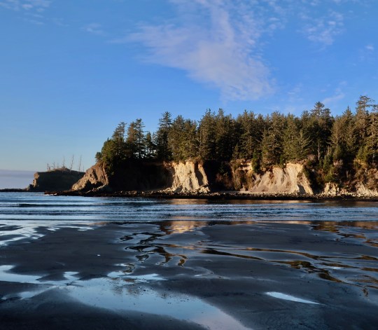 While the bay represents an earthquake caused subsidence, the Whiskey Run terrace surrounding the Bay represents uplifts and folding also created by tectonic activity related to the Cascadia Subduction Zone. The wave-caused erosion taking place in Sunset Bay operated on the terrace when it was at sea level. It’s estimated that the land rises approximately three feet every thousand years.