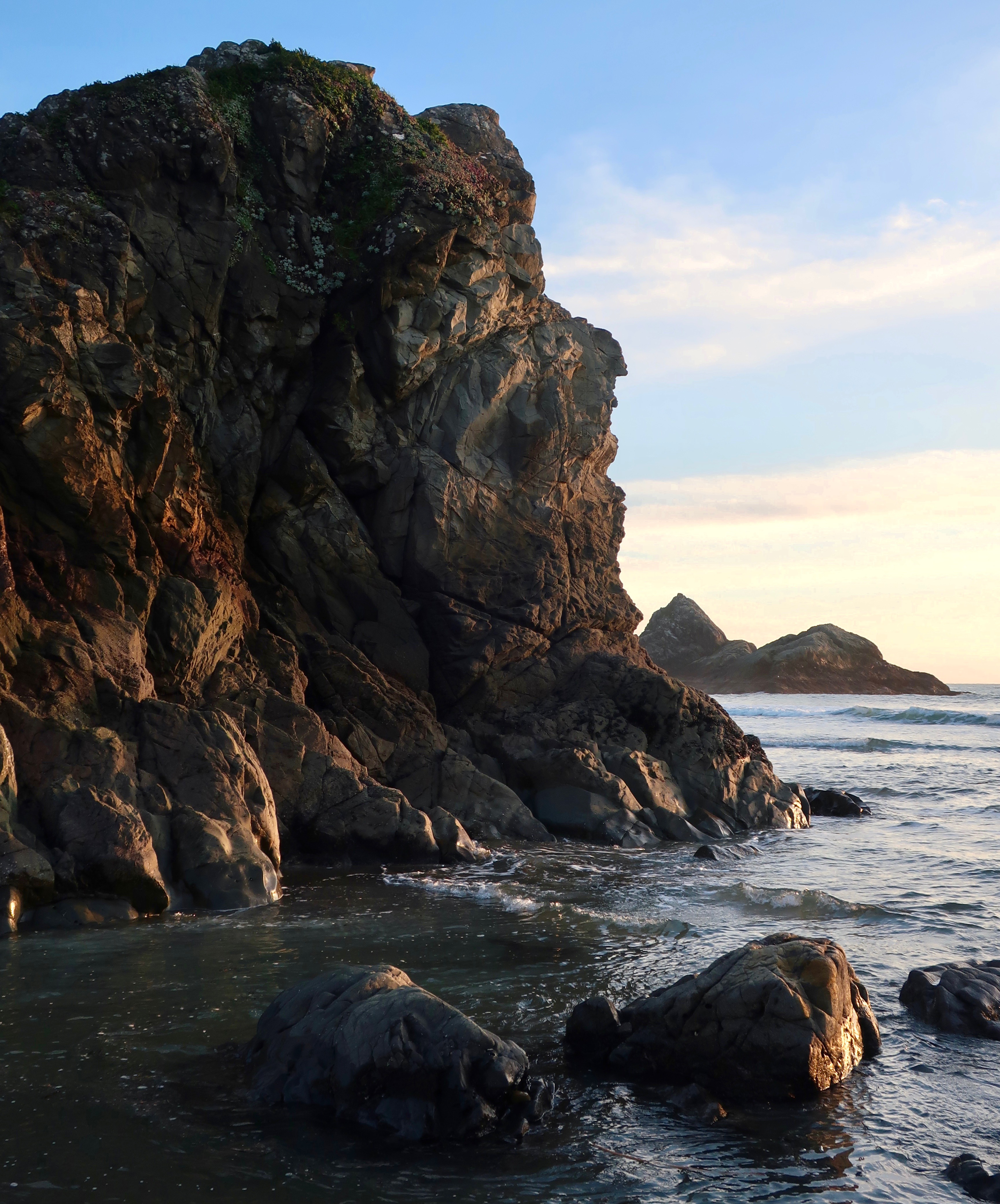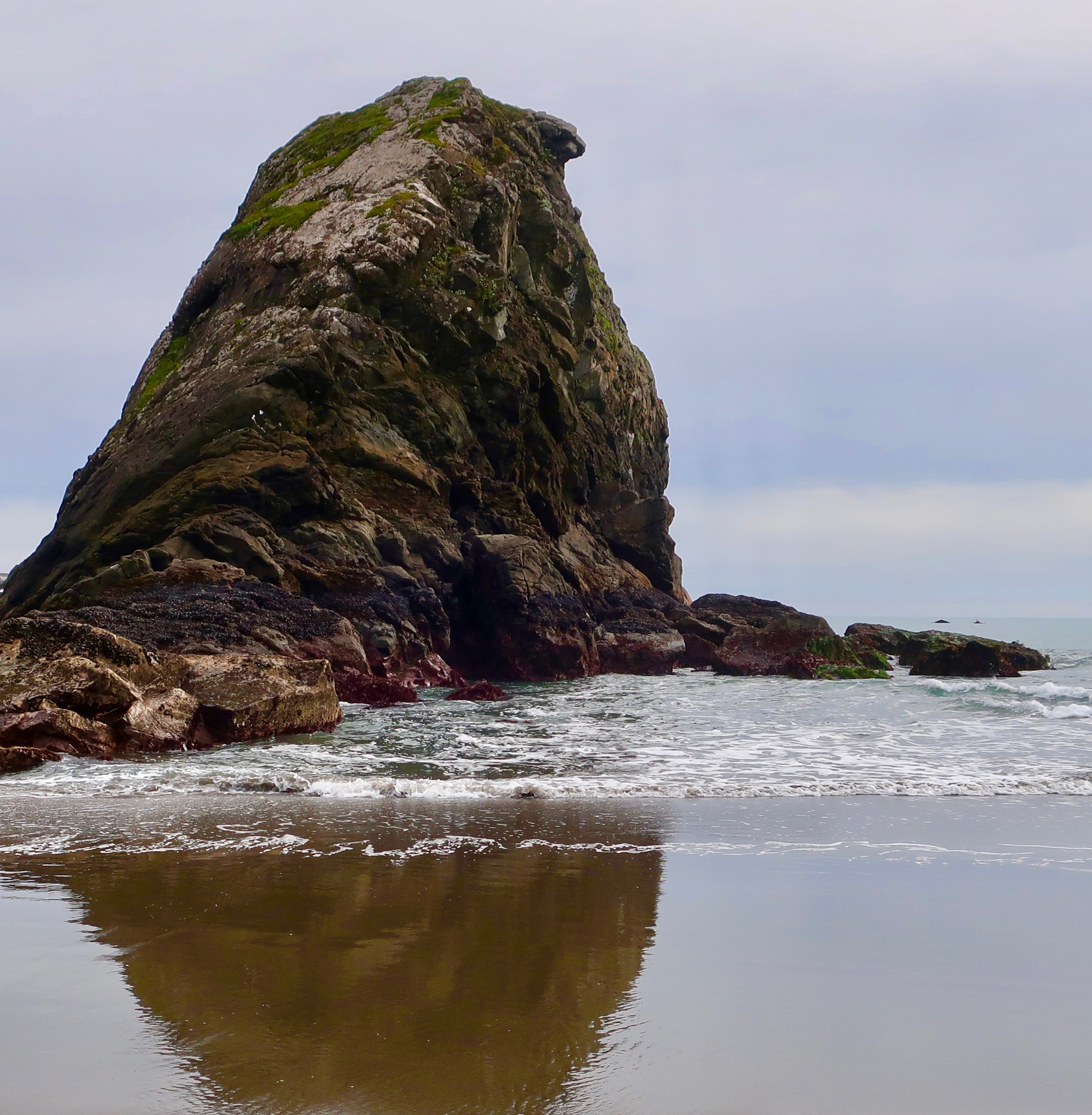 This massive sea stack appeared to have a face looking out toward sea. The rock base made me think of a many legged creature.