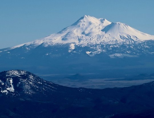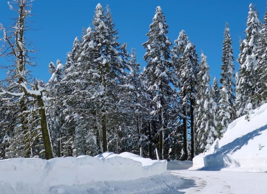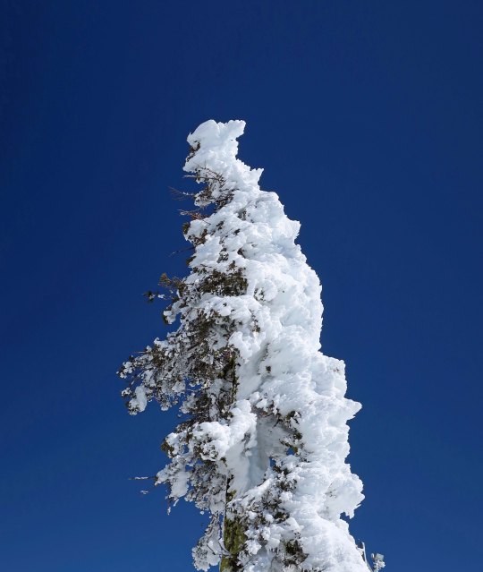 Tony, Cammie and the boys prepared to hit the slopes.Oops. (The kids actually did a great job of skiing regardless of the occasional face plant.)Wind driven snow had coated the trees the night before.Creating some interesting snow sculptures. Is that Cupid snuggling up to Big Foot in the center? Guess not.Deep blue skies and crystal white snow made for some dramatic photos. It was quite clear which way the wind had been blowing.Peggy and I had started our first segment of the PCT about a quarter mile down this road. Looking up toward Mt. Ashland with its weather dome for spotting incoming storms from the Pacific. It has had a busy winter.It was cold cold outside. These icicles were growing on the eves of the ski lodge.A view from inside the lodge where it was much warmer! I thought that the icicles looked a bit sinister. As we packed up to leave, I took a final photo of the family. Wait, what’s that poking out behind?Mt. Shasta, of course. If you followed my journey down the PCT you will have seen numerous photos of this beauty as I backpacked around it heading south. It’s a good place to end this post.
