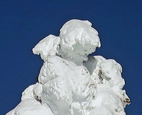 The last time you saw this rooster, it was covered in snow. While its strange eye makes it look like a dead rooster, it’s the tail made out of tools that amuses me.