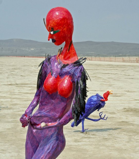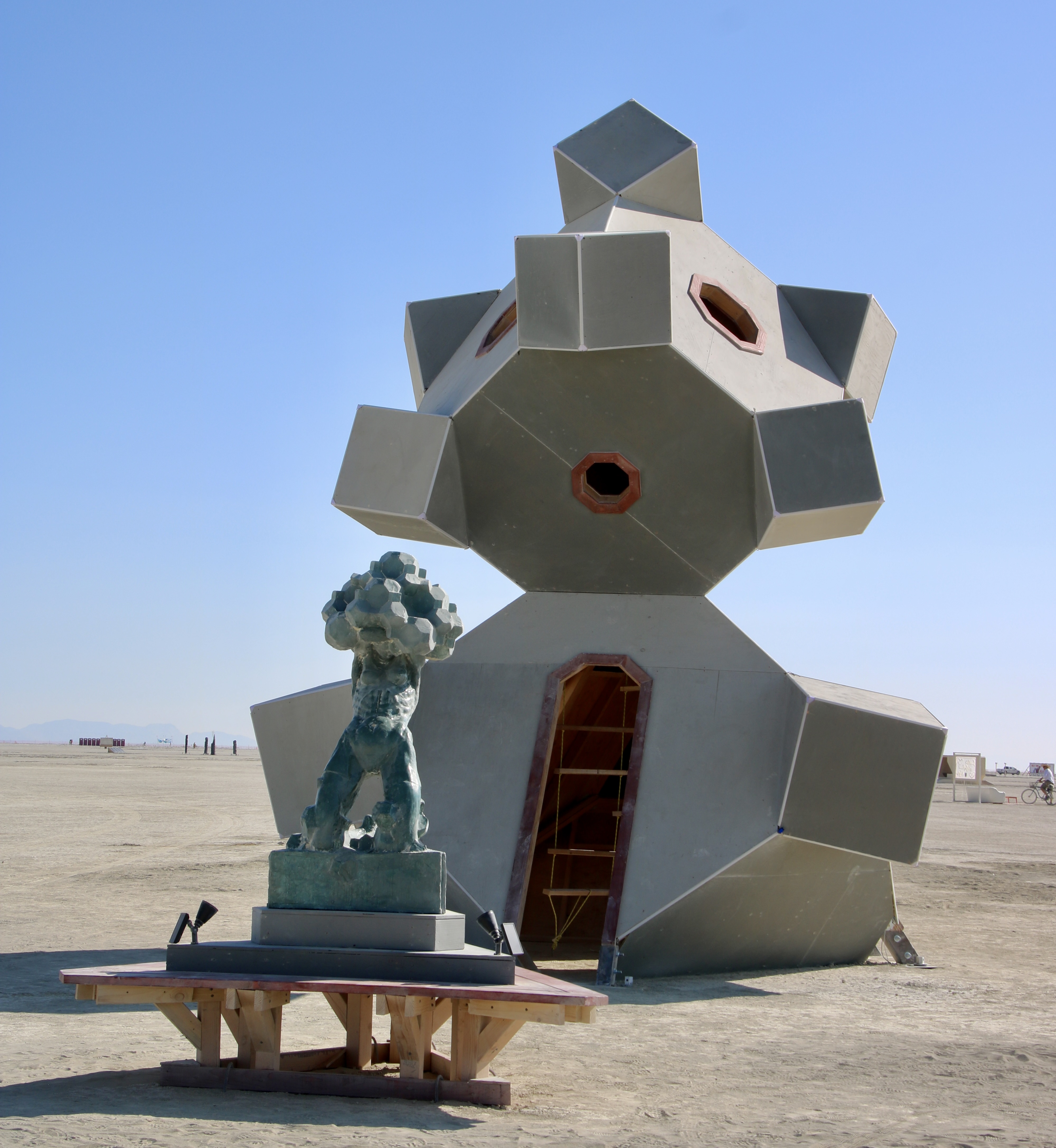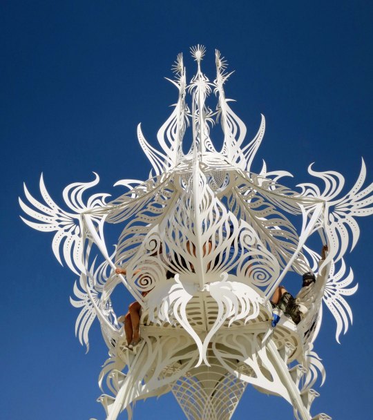 Petaluma, a city of 50,000 people less than an hour north out of San Francisco on Highway 101, is another major source of Burning Man Artists and art. Four of the main artists/teams featured in the Smithsonian exhibit come from here: The team of Michael Garlington and Natalia Bertotti who work as photographers/sculptures, David Best who is an architect/sculpture best known for his Burning Man Temples, and the team of Marco Cochrane, Julia Whitelaw who are known for their towering female sculptures.