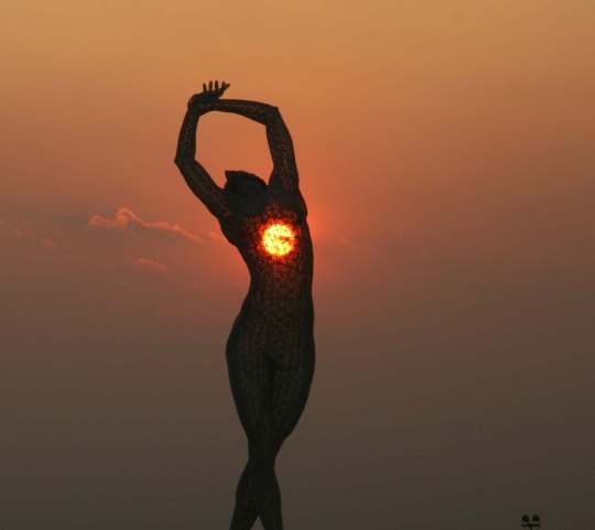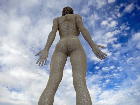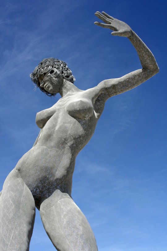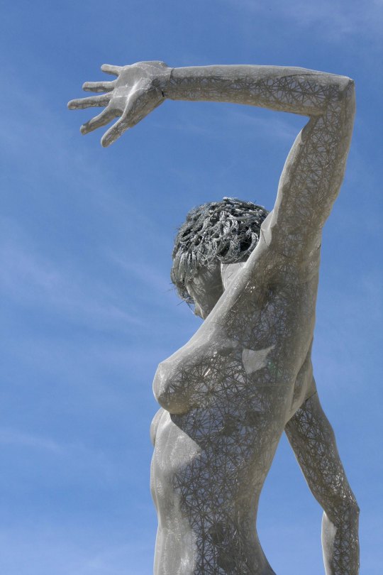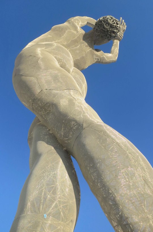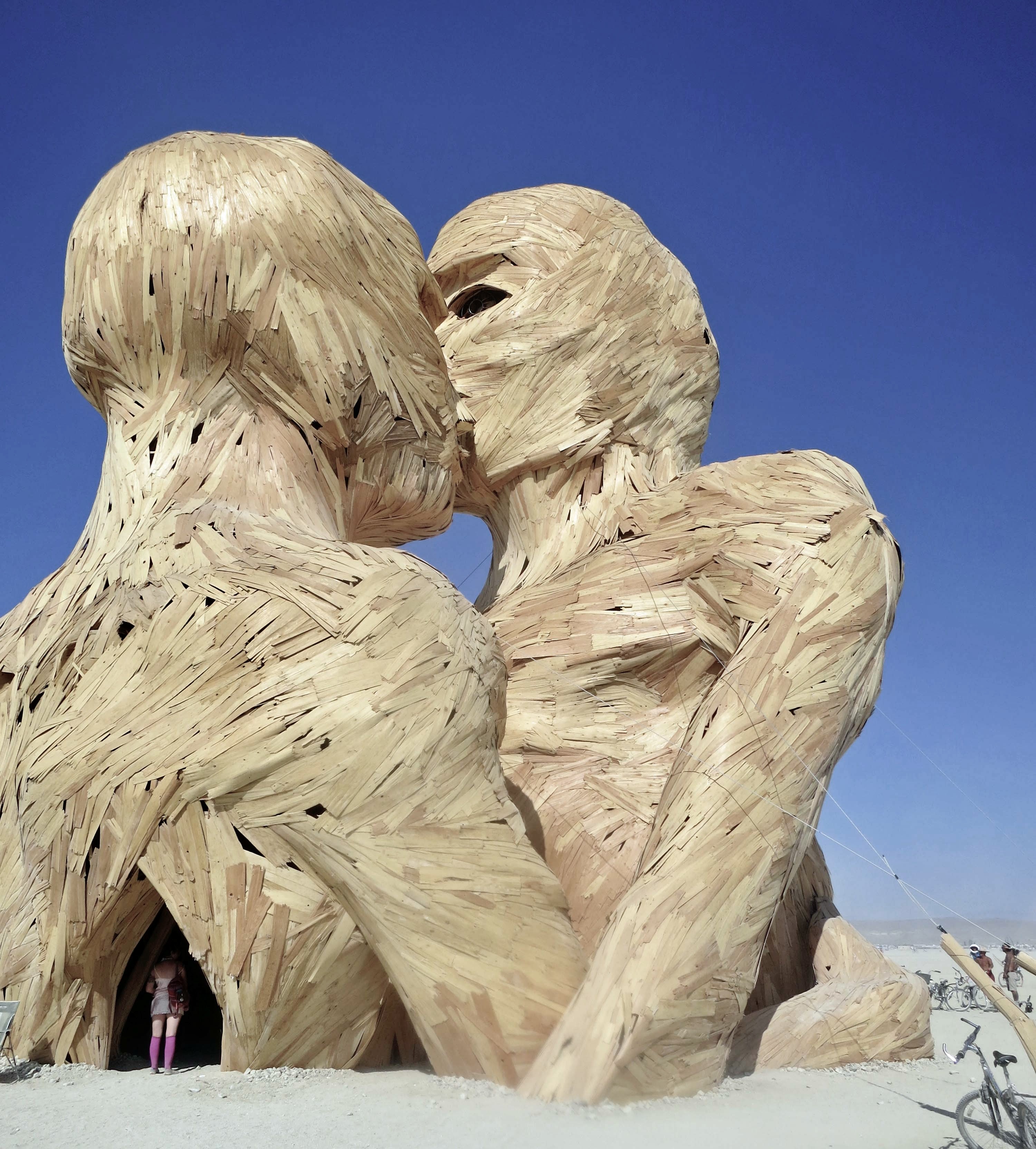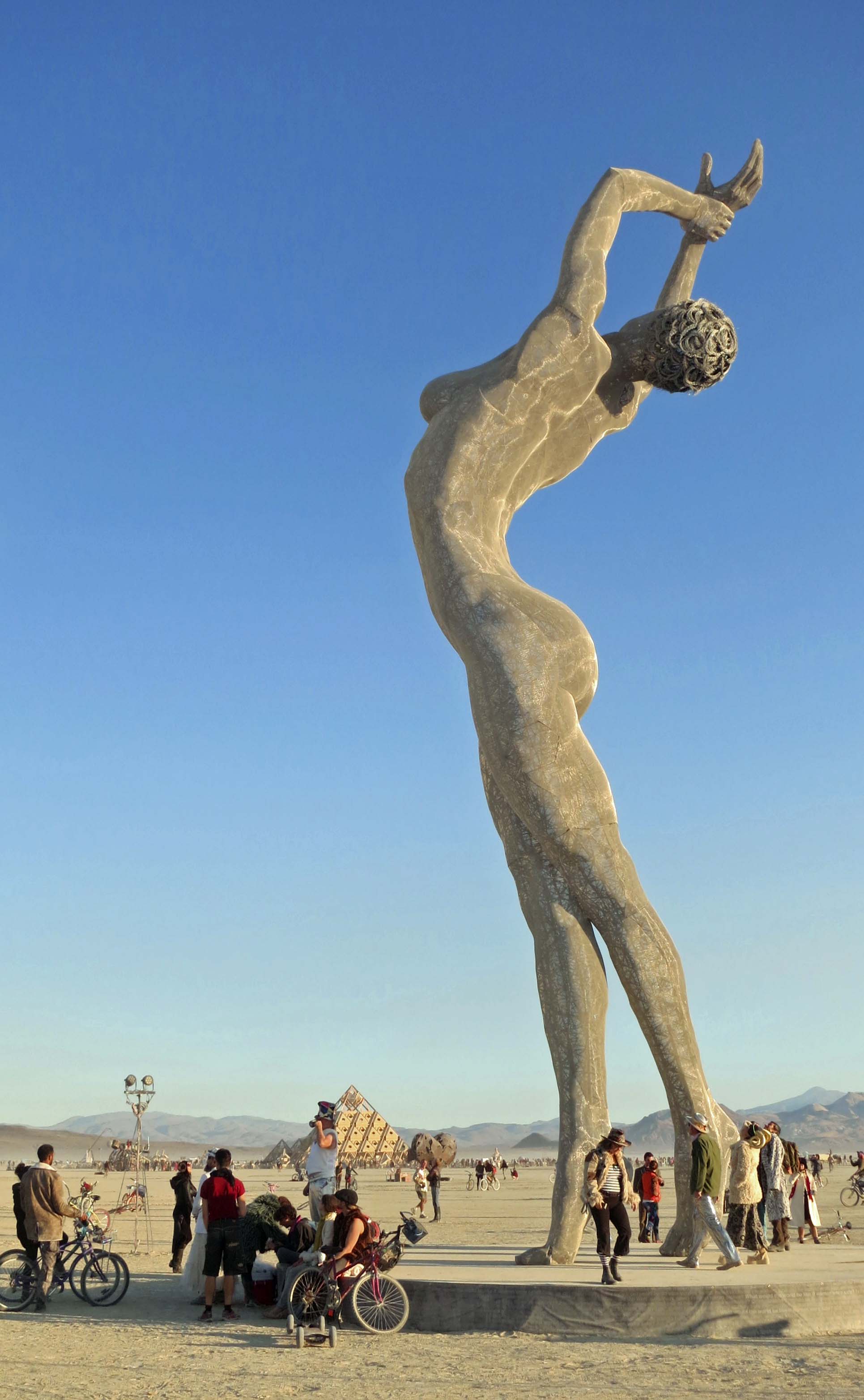 In 2010, Marco Cochrane introduced the first of his magnificent nude sculptures to Burning Man, the 40 foot tall Bliss Dance.