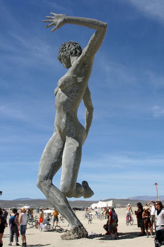 When I first ventured out onto the Playa on my 2010 visit to Burning Man, I was immediately drawn to a large sculpture of a nude woman that struck me as being beautiful and full of life. The sculpture, I learned was titled Bliss Dance and had been created by the Bay Area artist Marco Cochrane based on his model, the dancer Deja Solis. Bliss Dance would go from Burning Man to Treasure Island next to San Francisco and is now on permanent exhibition in Las Vegas. Here’s what Cochrane had to say during the unveiling of the sculpture in Las Vegas: