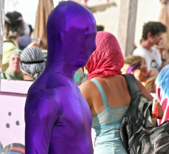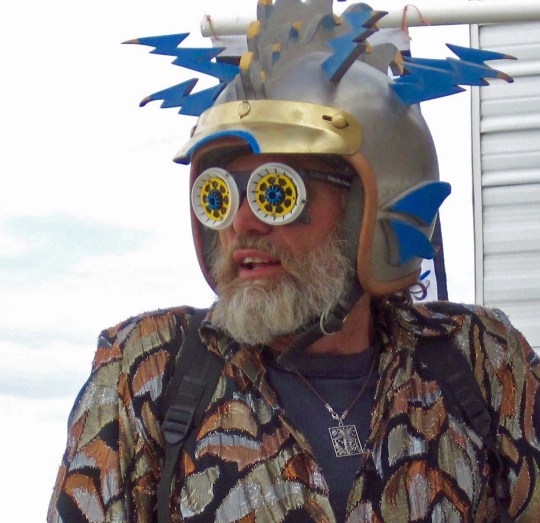 This guy shows up as a master of ceremonies every year at the annual costume contest. What better way to infiltrate Burning Man?
