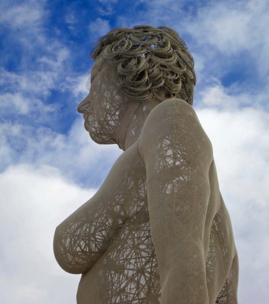 R-Evolution, the last of Cochrane’s trilogy was actually scheduled to be exhibited on the National Mall in Washington DC between the Washington Monument and the White House. The group responsible for moving and installing the sculpture had written to me and asked for permission to use photos from my blog in a documentary it was preparing for the exhibit. The exhibit was cancelled. It may have been that the idea of a giant nude on the mall was too controversial. Anyway, here is one of my favorite photos of the sculpture: