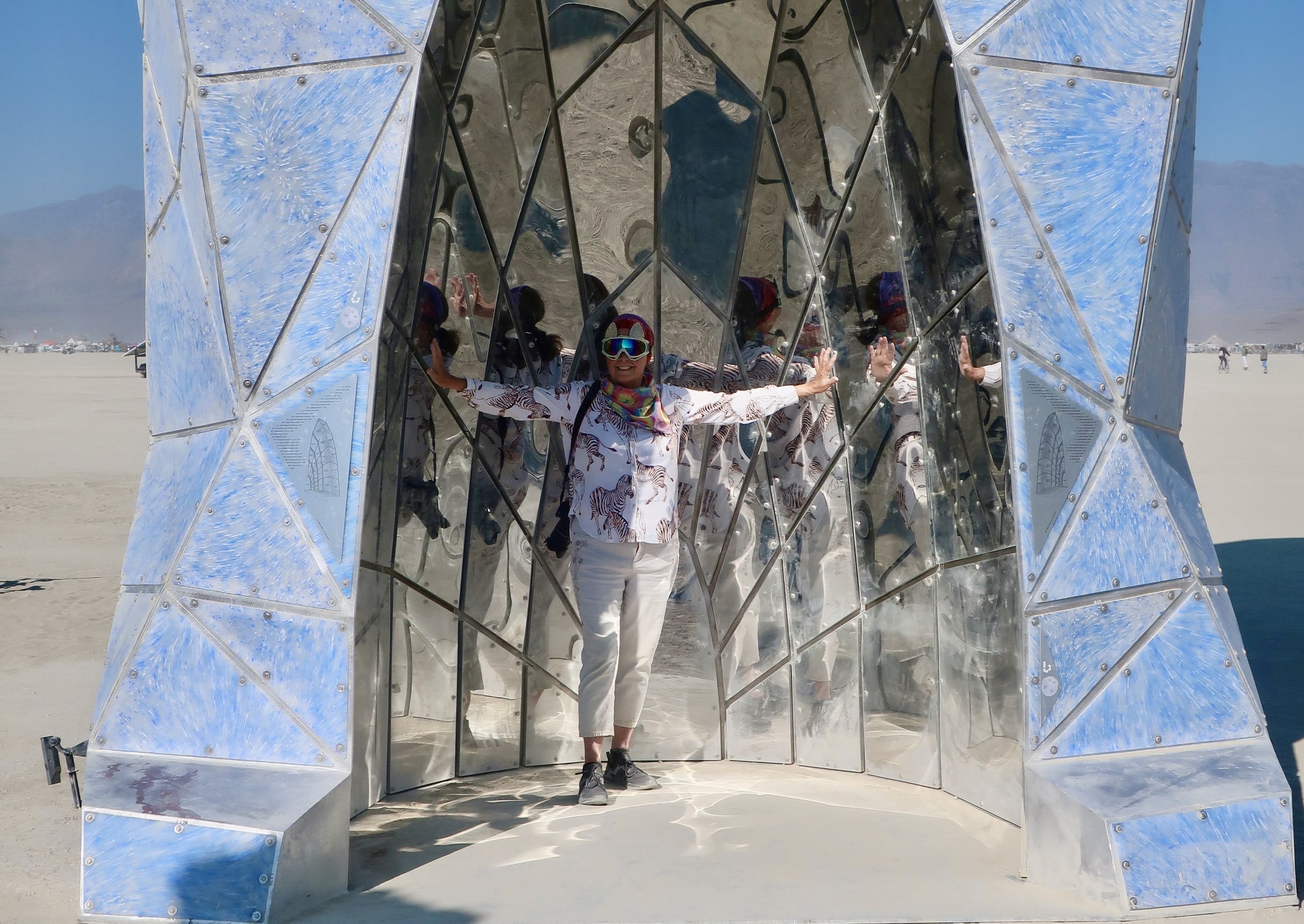“‘No Spectators’ is a long-standing saying on Playa. You are encouraged to fully participate. It’s all about being there, being fully present, and not just observing. Two of the ten principles of Burning Man are radical participation and radical inclusivity, meaning that there are no outsiders. Everyone is part of the experience.”