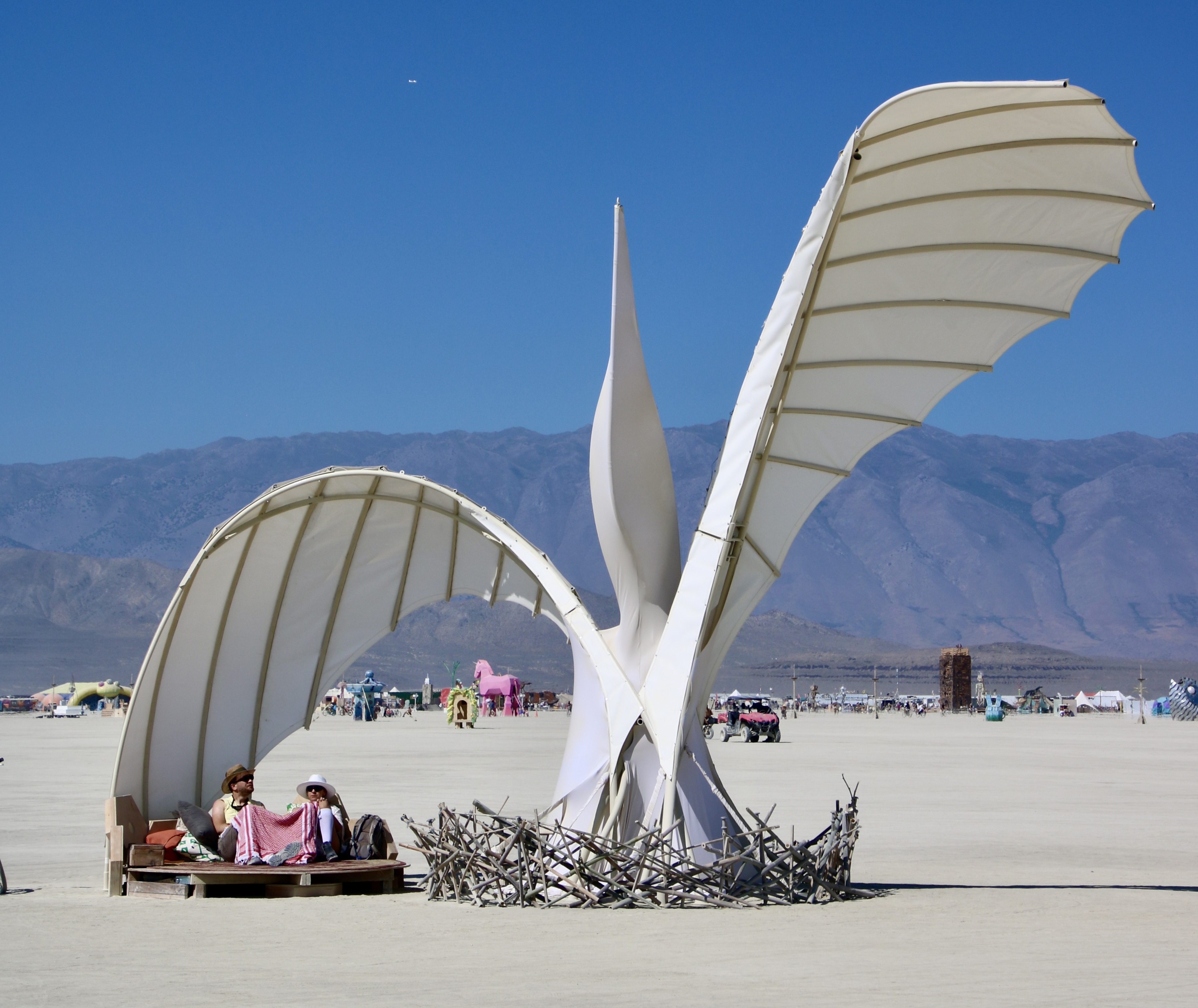 The international status of Burning Man art is not surprising. It is often mind blowing, thought provoking, monumental and beautiful. In 2018, the Renwick Gallery of the Smithsonian Art Museum recognized its status by featuring an exhibit of some of the events most creative artists. Titled, No Spectators: The Art of Burning Man, it took up the whole building! From there, the exhibit traveled on to the Cincinnati Art Museum and the Oakland Museum of California.