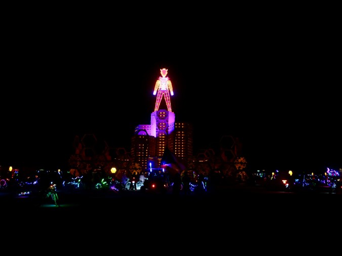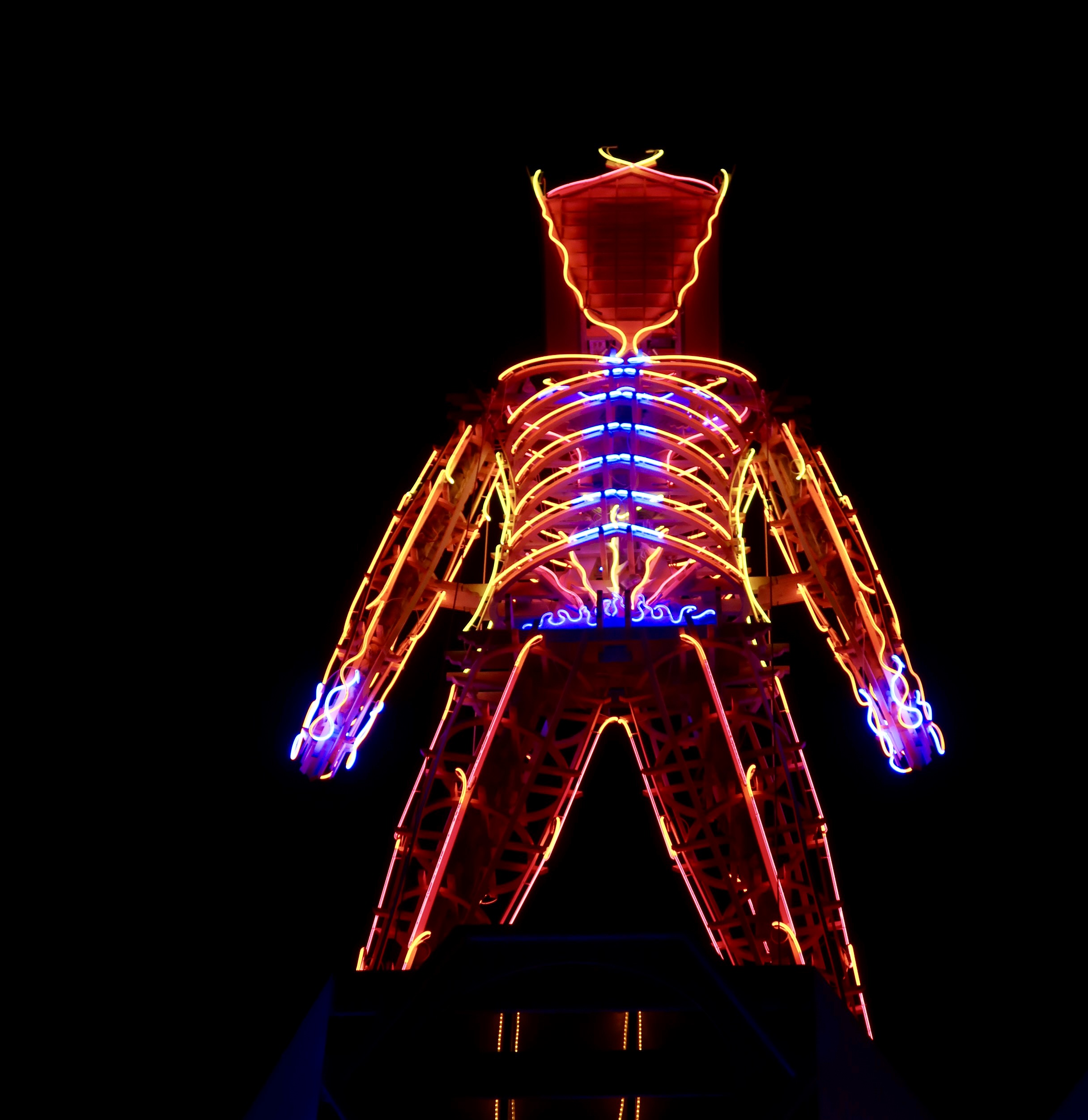 Night at Burning Man is a magical time complete with fire-breathing dragons and beautifully lit sculptures. The major burns, such as the Man, can light up the sky. Except for that, Burning Man is dark. Lanterns provide what light there is and they don’t extend into Black Rock City. I can guarantee that any city of 70,000 in America generates far more light than Burning Man. And Burning Man is only for one week. The issue I am not sure about is laser lights. Unless they are used to enhance art projects, my assumption is that they could be eliminated.