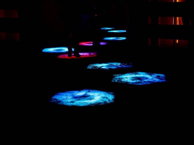 At night, LED lights inside the sculptures light them up in a number of ways, changing every few minutes.