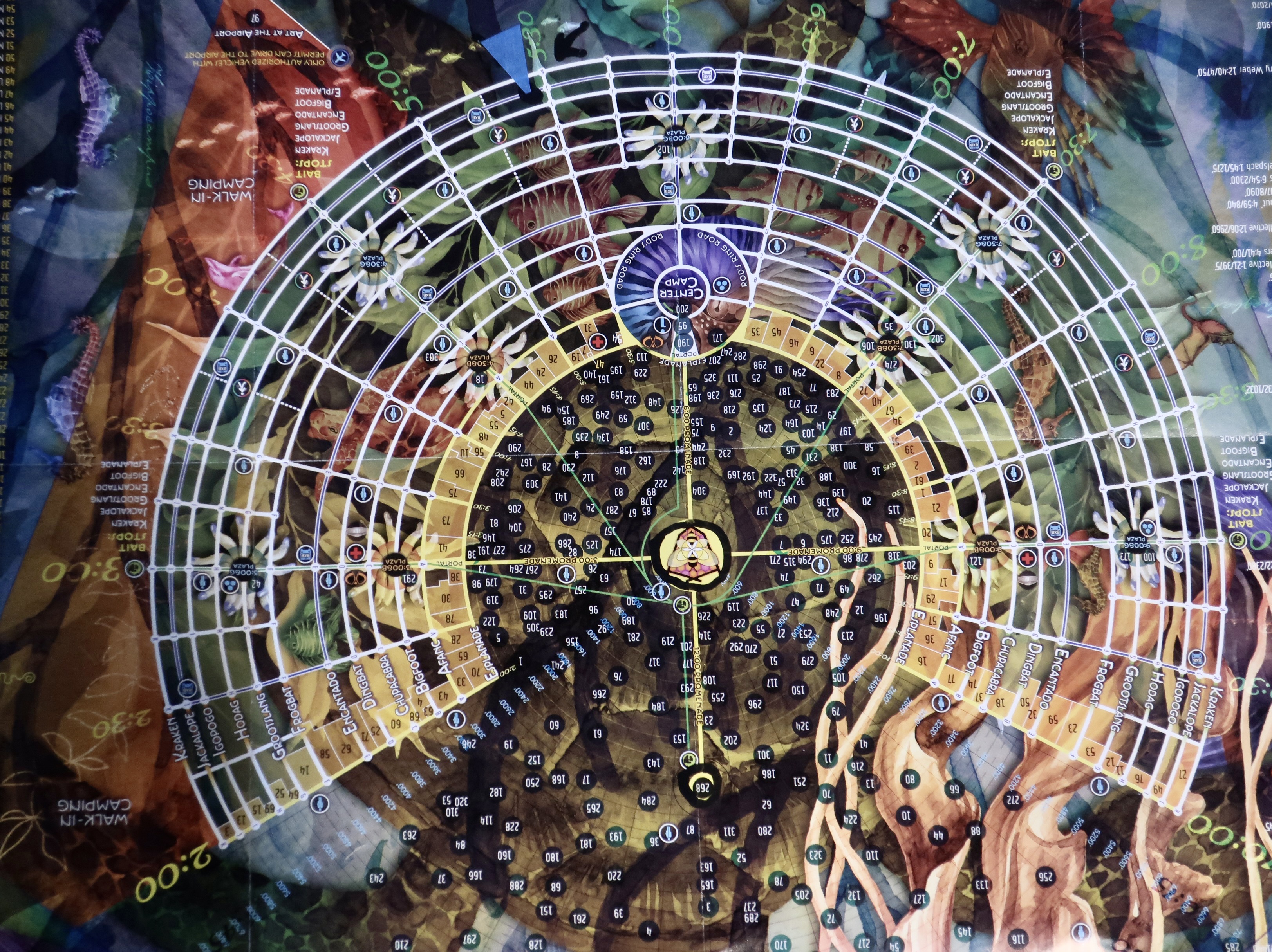 I took this photo from the map of Burning Man we were given when we entered. The small blue numbers off to the right are the distance from the Man. We were at 5800 feet, over a mile away! The white numbers in black represent art installations. I knew what Jackalope, Kraken and Bigfoot were. My memory of Dingbat was what Archie called his wife in the TV series All in the Family. I had to look the rest up. How about you? The Esplanade is Black Rock City’s Main Street and retains its name every year. It separates Black Rock City from the open Playa.This is the official map of Burning Man 2023, which was home to over 70,000 people. On the top left side, you will see a blue triangle that I added. That was where we lived on Jackalope. The Man is at the center of the map. The small circle south of it is the Temple. Note all of the art installations! The city is organized on a grid pattern with the streets heading toward the Man numbered clockwise and the intersecting streets organized by alphabet and name. Not shown here, is the extent of the Playa that extends much farther to the south.