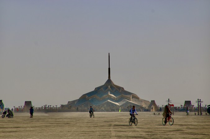 One of the first things we do when we arrive at Burning Man is head out to see the Man and Temple. Usually it’s by bike. But the crank on my rented bike was being cranky, so we walked. The following photos represent our journey. They were all taken by either Peggy or me.
