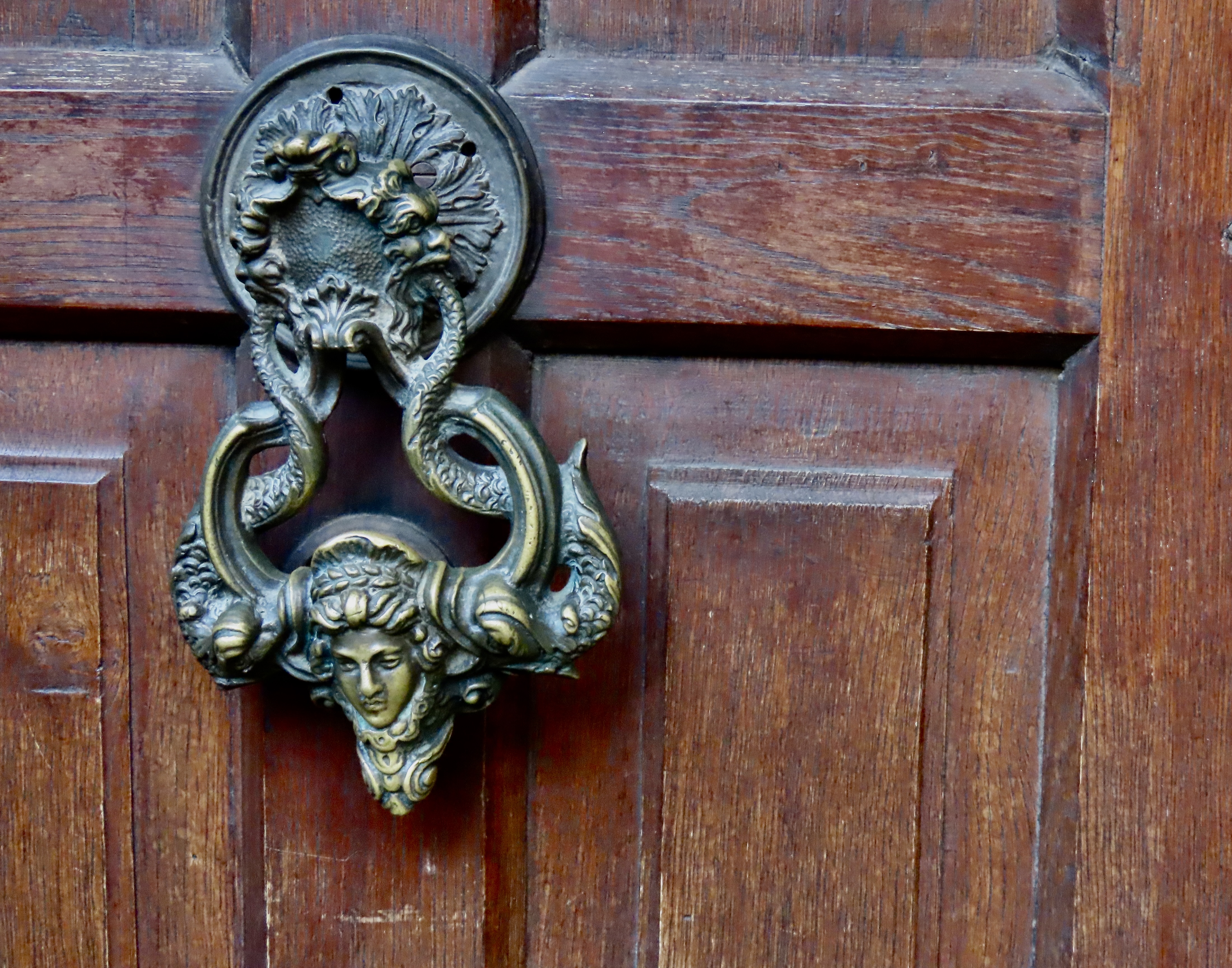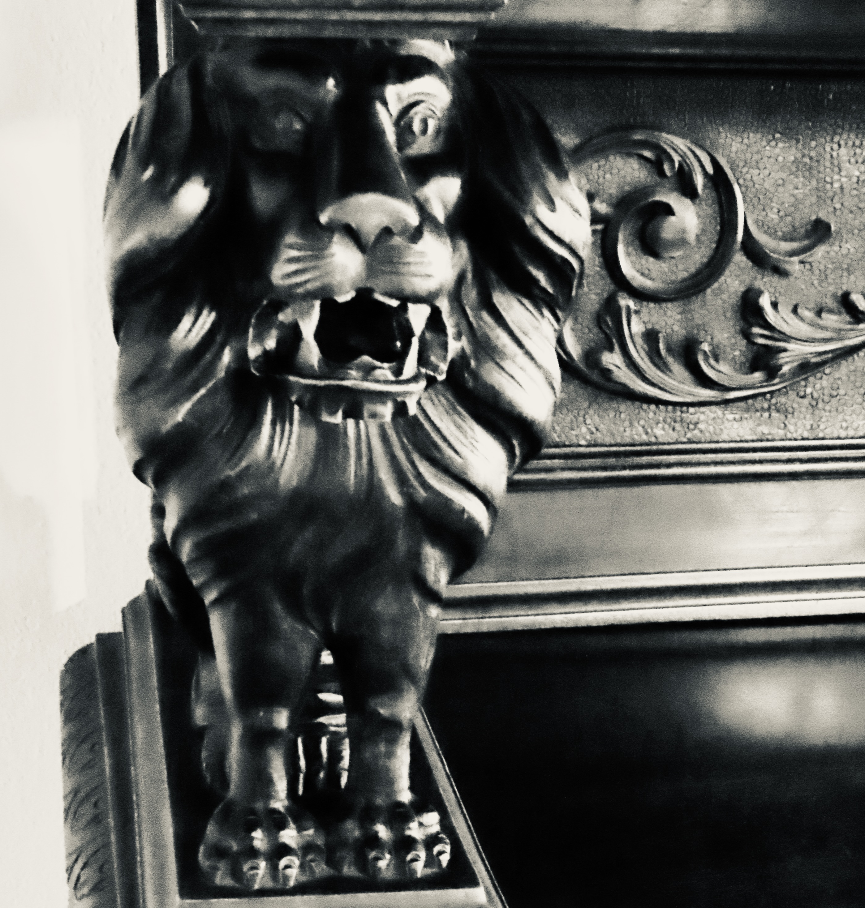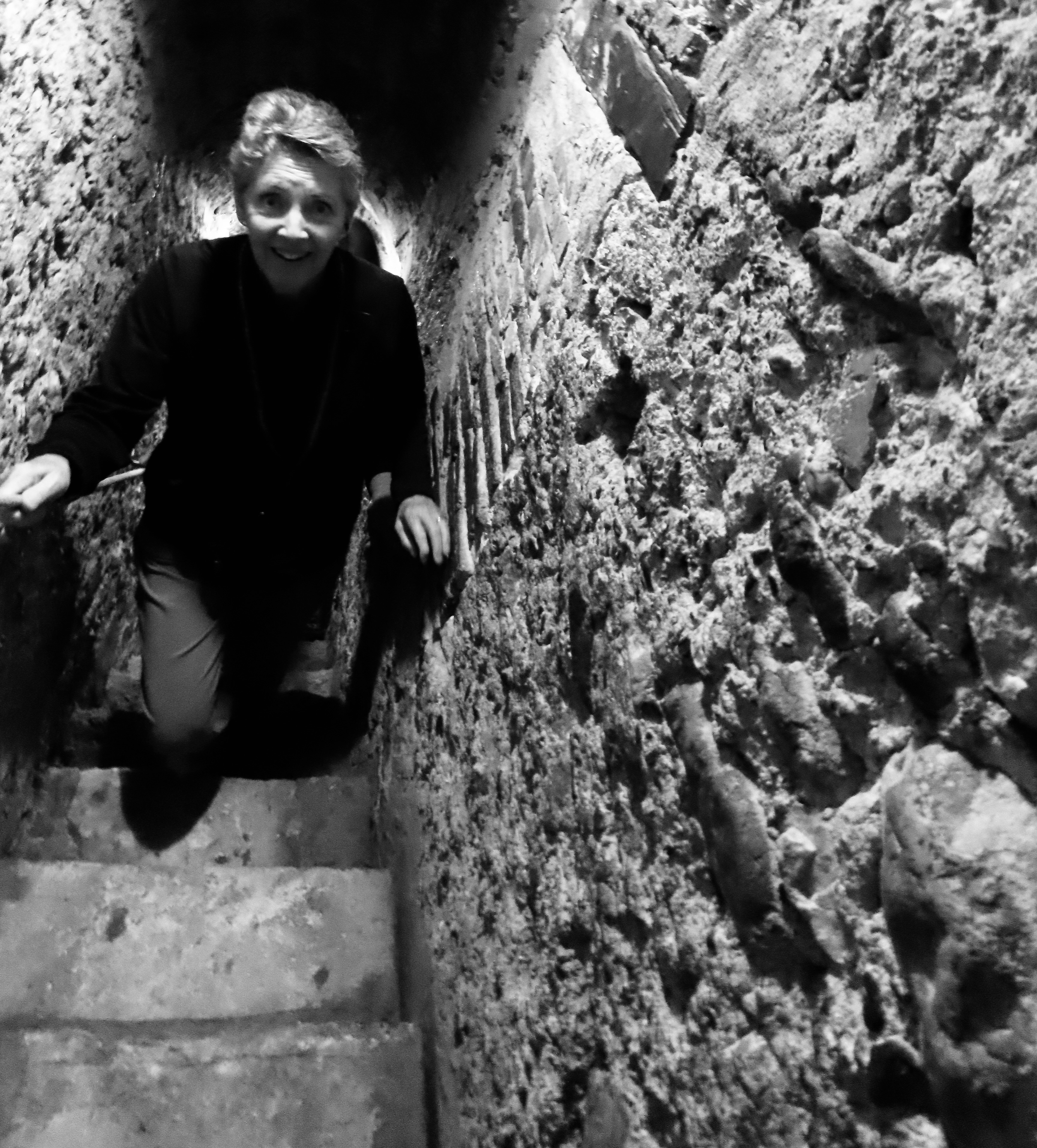 Peggy and I never expected to visit Dracula’s Castle in Transylvania but there it was on our Danube River trip itinerary. How could we resist? Halloween was only 2 1/2 weeks away.I felt right at home.There were even places for naps.And to sit.Or stand if you preferred…There was a danger of being tied up, however.And ghosts. This scary fellow was floating back and forth in a dark room, like a caged wild animal. Optical illusion? Perhaps…A wild lion with vampire sharp teeth peered out from a table…A lioness with frightening sliced eyes was hidden among scroll-like decorations.Looking closely, other evil creatures seemingly appeared out of nowhere, like this satan goat with dead eyes and his companion, a horned dragon.Even door knockers were threatening. “Beware!” rather than “Welcome” was the message. Monsters’ heads peered out from the medallion. Two snakes slithered out, wound around the knocker, and became a second set of massive horns on a cruel face with pursed lips.Strange metal doors invited opening. Dare we? What dark secrets does the room hide? Eyes stared out from the top panel. Halloween scary for sure.Peggy entered a dark room and came out screaming. Had her hair fallen out? (Our guide had hidden behind a curtain and jumped out yelling.)And there were lots of dark, narrow, ancient stairs to climb that led to mysterious heights. Was this damsel in distress wearing a nervous smile about to become Dracula’s latest victim? (We were traveling with Peggy’s brother John and his wife Frances. This is Frances negotiating the ‘dark, narrow stairs,’ with a smile.)Even the castle’s no-smoking sign had a bit of Halloween-type humor, which brings me to something much more scary than Bram Stoker’s Dracula, the real, historical Dracula, son of Dracul…Vlad the Impaler.