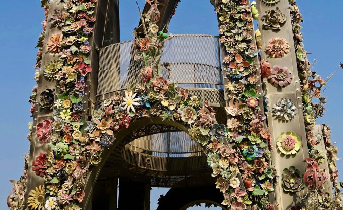 When the Man raises his arms, the fireworks display starts with a bang. Here they were shooting out from the golden spike.