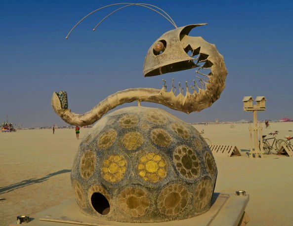 I read this description from Burning Man’s review of 2017 art and knew that I had to go find Rix’s work. I’d missed it on my first ride through the Playa. I was not disappointed. Strange stuff.