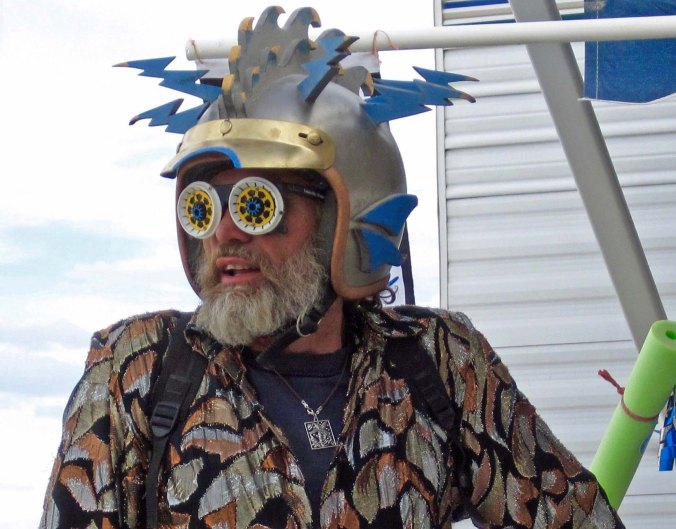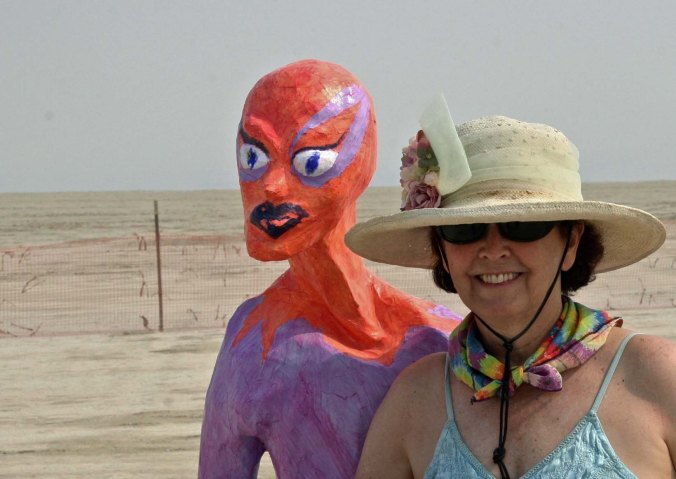 Bone has been wandering the world for 40 years. Given his nature, it is only natural that he would end up at Burning Man. He and a butterfly are perched on “Horse with No Name,” preparing to ride off into the desert.