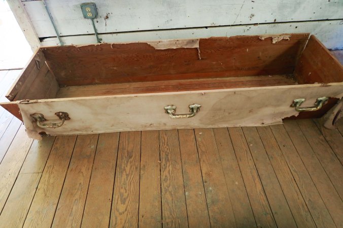 The ‘Tabernacle’ is located behind the house. This building served as a barn for horses and mules on the first floor and a meeting hall, dance floor, and church on the second floor. Today the building houses a number of artifacts.