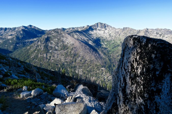 Looking south from Granite Chief, the mountains in the distance are part of Desolation Wilderness, that runs along the west side of Lake Tahoe.