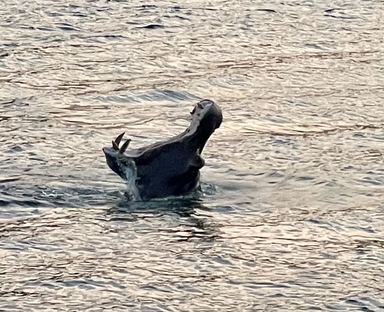 I think this may be the definition of bliss, an emotion one wouldn’t normally associate with a hippo. We took this photo on Lake Kariba in Zimbabwe.