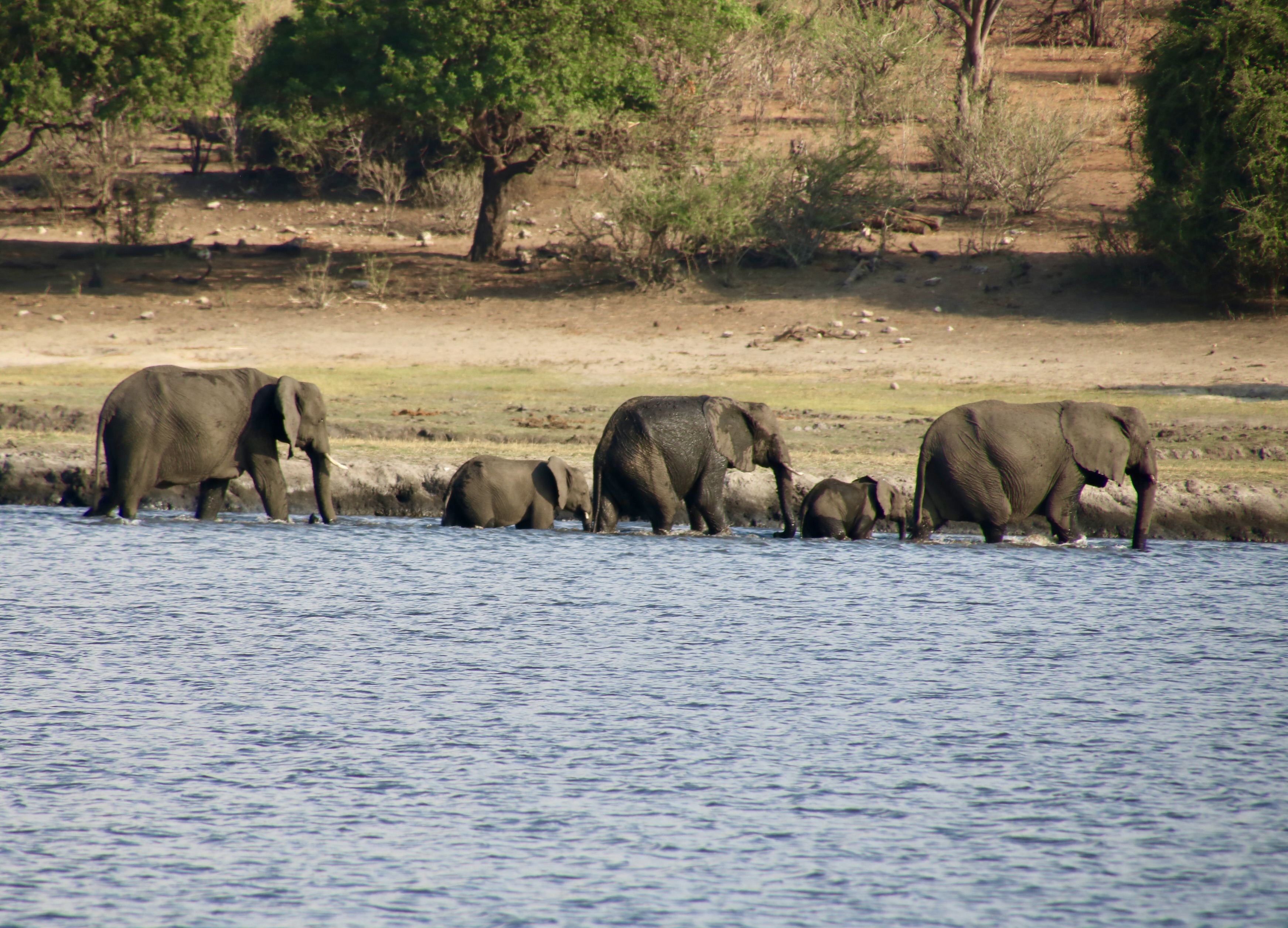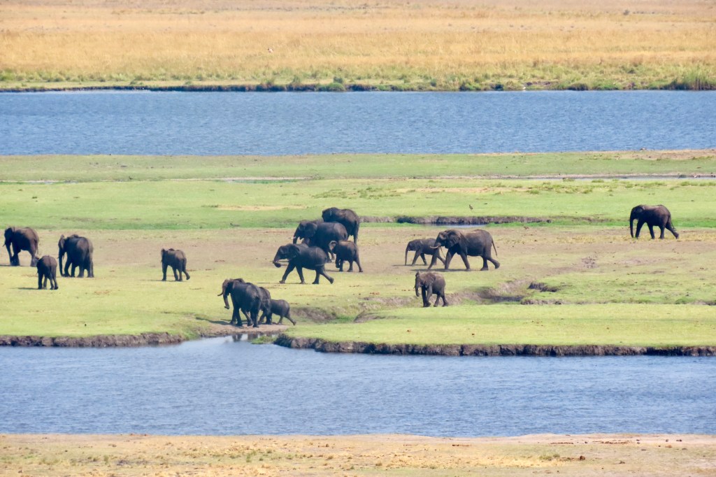 There was no challenge finding elephants along the Chobe River in October at the end of dry season. With the coming rains, they will spread out across the park.