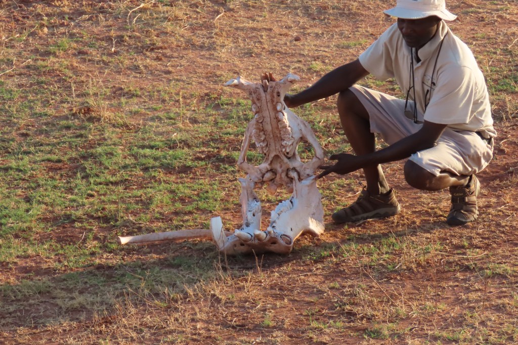 Cape buffalo are dangerous, no doubt about it. But what makes them so? The look alone says “Don’t mess with me.” The eyes, the horns, the ears and even the nose speak of danger! We were safely ensconced in our boat on the Chobe River. Did I mention that the buffalo are great swimmers…Size matters. The big bulls can weigh up to a ton. The really big ones can reach over 6 feet in height and 11 feet in length.Which, in no way, means that you would want to mess with a thousand pound female…And then there are the horns. No one, not even a lion, wants to be hooked by one.They are the boss. That is actually what the horn structure is called. The solid shield created where the horns meet is so tough that it can withstand the pressure of another large male crashing against it!They attack as a group. You won’t be dealing with one. It could be the whole herd. They protect each other, including the young, the old and the sick. The largest males form a circle around the vulnerable with their horns pointing out. When a calf cries in alarm, the bulls come charging.Terry, the co-owner of the Iganyana Tent Camp where we stayed on the edge of Hwange National Park, told us a story about this downed tree. His brother-in-law came to visit and went out for an evening walk. He called Terry and asked for a pick up because he heard lions. Terry jumped in his truck and rushed to the scene. He didn’t have to worry about the lions. They were up as high as they could get on the stump as the herd of buffalo ran in circles under it, threatening instant death if they dared to come down. That’s how scary they are. The week before we arrived, a herd of around a thousand came to visit the camp and stayed until 11 that night, Terry told us. No one could go back to their tent until the buffalo left! One of them left its calling card on the pathway up to the tent we were staying in. Peggy and I had a hard time imagining being in the tent while the herd roamed around outside.We were out for an evening drive with our guide when we came across the herd crossing the road. “Be quiet,” the guide told us. “Be very quiet.” The guide waited until there was a break and dashed through it.What our guided didn’t tell us was that the herd was coming to graze in the same field where a surprise party was being hosted for us! While Peggy made horns, I checked out the tree for a possible escape. Just in case, you know. I’m happy to report that the buffalo happily munched away on their side of the field while we drank on ours. Fortunately, there was a sufficient supply of alcohol with a great motto. Enough that Peggy changed her approach to making horns. That’s it for today. The next post will be about a fishing village we visited on an island in Lake Kariba, and a carving camp we shopped at in Victoria Falls.A few of the children from the fishing village gathered around me and demanded that I take their photo.