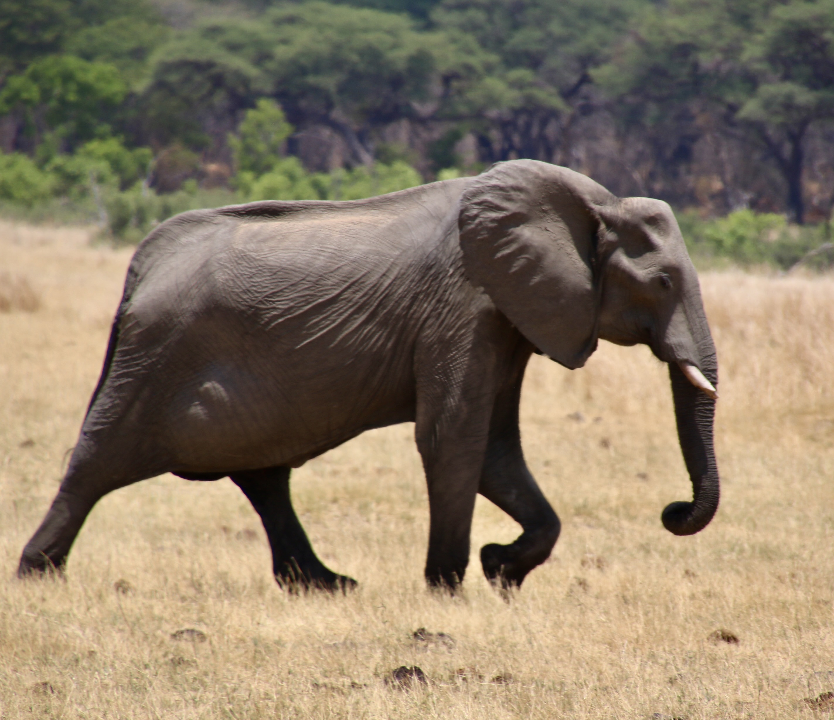 I’m going to try something now in concluding this post that I rarely do: Share a video. We normally take several for ourselves but not for the blog. Too many oops. Handheld videography has its challenges! But this two minute video shows an excellent example of an elephant-hippo confrontation. It’s worth checking out, even with its occasional shakes. It’s almost funny as the hippo maneuvers his way through the elephants trying to show itself as harmless and submissive as possible— and only raises its head when the elephants are left far behind. You can almost hear its sigh of relief. Enjoy. Click twice on the photo to start the video. On our next post, we will feature giraffes, Peggy’s favorite animal.