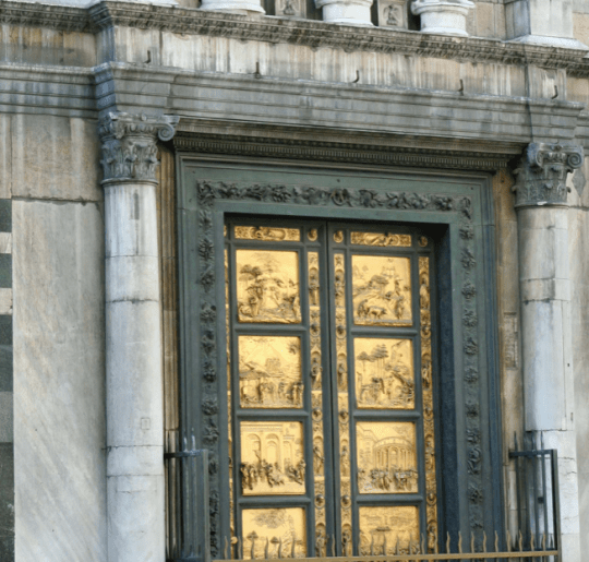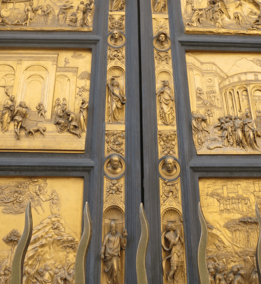 The Baptistery features Ghiberti’s bronze doors. Michelangelo believed these gates were so beautiful they could have served as “the Gates of Paradise.”