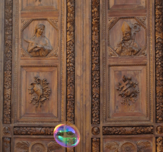 A bulb floated up past the carved wooden doors of the Basilica of Santa Croce.I’ll wrap-up today’s post with a view of the the Basilica of Santa Croce in Florence caught in the glow of the afternoon sun.